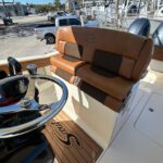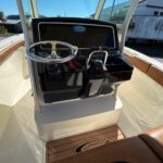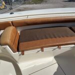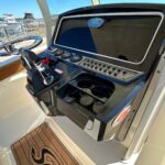 Scout is known for introducing models with market-first innovations that separate our models from the competition, and the 275 LXF is no exception. One interesting feature is the wave gate/fold down stern seat that folds down all the way to the deck floor creating easy access to the transom, swim platforms and engines. The model showcases Scout’s patented T-top/hardtop w/ tempered glass enclosure, a one-of-a-kind electronically actuated sliding electronics Plexiglas window at the helm that completely protects your electronics package, and our revolutionary Nu-V3 high performance, fuel saving hull design. The cockpit offers spacious fishing room, as well as a bait prep station w/ sink and stainless tackle drawers. There’s also room for an optional Kenyon electric grill to cook up the catch of the day with the help of an inverter/charging system that’s also an optional feature.