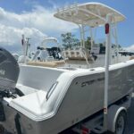 2016 Sportsman 232 Open center console powered by a Yamaha F250 XA motor with only 185 hours of use. Clean boat with Coastal Beige hull color and matching beige upholstery. SIMRAD GPS/fish finder, Bluetooth stereo with cockpit speakers, freshwater shower, and much more. This is a roomy boat with lots of comfortable seating in the bow and stern. Excellent fishing features including a live well, rod holders, and tackle storage. If you are looking for a mid-sized center console that is great for the family and still fishes with the big boys, this is the boat for you. Trailer not included. A trailer can be added for an additional cost.