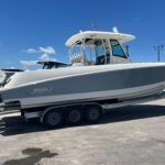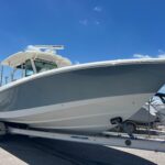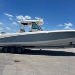 New Engines! Only 11 Hours. TRAILER Included!! This is a super clean Boston Whaler 350 Outrage Center Console Powered by 2023 Mercury 300 HP 4-Stroke V8 Engines with only 11 hours on them. The boat is set up with the Mercury Joystick w/ Sky Hook & Auto Pilot. This boat comes with the Trailer. The upholstery was replaced and is nice condition. The boat has an incredible Electronics set up with two huge Raymarine Multi-Function Displays, Radar – Open Array, Fusion Stereo w/ JL Audio Speakers, VHF Radio, Underwater Lights, & Remote Spotlight. The layout in this boat is incredible and offers awesome amenities & space for Entertaining, Lounging and Fishing! The rear Cockpit is gigantic and has a very large access to the Bilge Area where everything is easy to get to or work on. The Helm Area has a wonderful fold down Step panel which raises you to give you a great view over the console & boat. The Bow area has a ton of seating and a huge lounge with amazing storage under it. This really is an incredible boat with new power and kept very clean. If you are looking for a nice center console in this size range this is a must see!