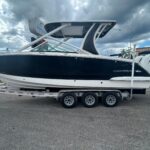 Beautiful 2021 Chaparral 280 OSX powered by twin Yamaha F250 XCA motors with 131 hours, Optimus joystick steering, and factory warranty through 4-14-2026. 2021 aluminum Load Master trailer included in the price. Options include: Custom painted engines, Sea Star Optimus 360 joystick, hard top underside color match, bow and cockpit mooring covers, JL audio upgrade, electric head with overboard discharge, premium beach weave flooring, anchor windlass with 200′ of line and stainless steel anchor, dual SIMRAD screens, and much more.