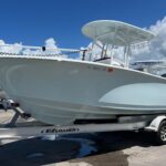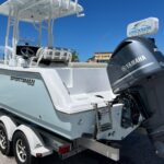 This 232 Sportsman is in excellent condition. Options include a Yamaha F250XCA with 120 hours, Twin Garmin 942 GPS/Fish Finders, Garmin 110 VHF, Bow Filler with Cushion, Yeti Cooler with Slide Out Track, JL MM50 Stereo with 6 JL Speakers, Fresh and Raw Water Washdown, Porta Potti, Under Water Lights, Compass, Trim Tabs with Indicators, Dual Batteries with Switch, Cushion Package, Fiberglass Hard Top, Stainless Steel Swim Ladder, Flood Lights, Under Gunnel Lights, and Leaning Post with Flip Up Bolsters. The trailer is not included in the price, but we can get one.