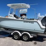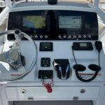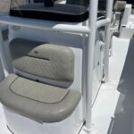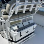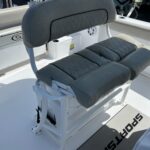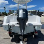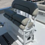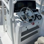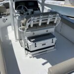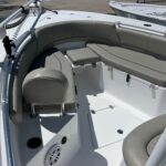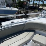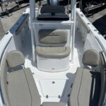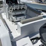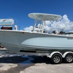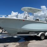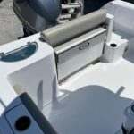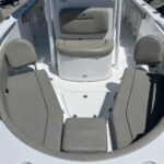 This 23 footer delivers exceptional ride quality and fishability. Featuring a gunwale height 25-gallon livewell, walk-through transom with a door and collapsible rear bench. The open center bow design, easily accommodates fishing at the bow while still maintaining the large insulated bow storage boxes. The standard bow cushions and bolsters, complete this package. The trailer is not included in the price, but we can get one.