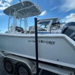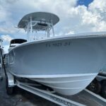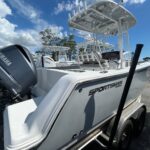 Very clean 2021 Sportsman Open 232 powered by a Yamaha F250 XCA motor with digital controls and 208 hours of use. This boat was very well taken care of and stored under the included canvas covers. Storm Cloud Gray hull color with t-top underside color match and white bottom, white powder coating, and ash gray upholstery. Bow filler with cushion, Yeti cooler with slide out rack, leaning post tackle storage, and much more. Twin 9″ Garmin screens, Garmin VHF radio, and a JL MM50 Bluetooth stereo round out the electronics. Sportsman has a long line of standard equipment. Call today for more information.