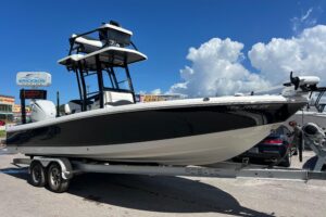 This Contender 25 T comes with the Amera Trail Trailer and it shows like a new boat! It is powered by twin Mercury 225 HP 4-Strokes with only 110 hours on them. The motors are 2024 model year. There is Mercury Warranty on the engines till 12/8/2028. The boat has never been fished. It is super clean and loaded with nice Electronics & Options including two Garmin 8612XSV’s (12″ Multi-Function Displays), VHF Radio, Radar – Fantom Dome, Big JL Audio Stereo System, XM Radio & Weather & Battery Charger. It also has a full Cover that comes with it. This boat is really in perfect condition. It is heavily waxed. Other options include, T-Top, Freshwater, Bench Seat Rear Fold Down, House Battery, Additional Bilge Pump, Live well Clear Lid, Live well Light, & Windshield. Aluminum trailer with Stainless Steal hardware (AmeraTrail) Trailer is included with Electric over Hydraulic brakes.