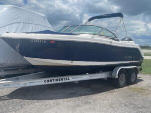This is a beautiful 2024 Chaparral 19 SSi OB Outboard Bow Rider with a Yamaha 115 Four Stoke. The Trailer is included! It has beautiful Biscayne Blue Hull Sides and Sterling Accents Cockpit Interior. This boat has some other wonderful features and options including, a Bimini Top with Boot and Aluminum Frame, Bow and Cockpit Covers, 5 Year Component Warranty, Stainless Steel Swim Ladder, Digital Gauges and Aluminum Trailer. This boat is very affordable and super easy to maintain and go have fun in. The layout is perfect for cruising comfortably around the bay and near shore with up to 10 people. The cockpit in floor storage hatch was designed to fit a Wake Board in it and it has 30 quart cooler under the back seat. The boat also has a rea sun lounge with storage under it. This boat is very easy to go out and use for the day and then bring back home, clean it, and put it away with very minimal work. One person can load and unload this boat at the boat ramp and handle everything very easily.