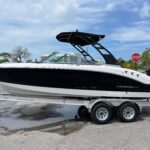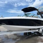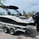 This 2024 Chaparral 21 SSI OB is an awesome Bow Rider with a great folding arch and Big Power with the Mercury 200 HP V6 4-Stroke Outboard. The TRAILER IS ICLUDED!! This is the Upgraded Aluminum Trailer. The layout and design of the boat is very innovative with the rear Sun Lounge having multiple lift up & adjustable backrests for reclining or sitting. You can have your choice on how you want to relax and make yourself perfectly comfortable! The Captain will enjoy full confidence in navigating with the easy to use 9″ Simrad Touch Screen GPS / Fish Finder beautifully flush mounted in the dash. The cockpit is very comfy to move around because it has nice soft Sea Deck Flooring that snaps in. Other options include the Folding Velocity Arch w/ Bimini, Bow & Cockpit Cover, Deluxe Pkg., Sea Deck swim Platform Mat, Clarion Transom Remote, & a 5 Year Premier Level Limited, Component Warranty.