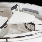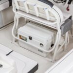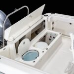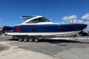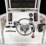 Options Include: Solid Hull Steel Blue Gel Coat, Harbor Steel Blue Cockpit Interior Accents, Fiberglass Hard Top with White Powder Coating, Simrad GO9 GPS/Fish Finder, Trim Tabs with Indicators, Enclosed Head with Porta-Pottie, Seadeck Helm Mat, Stainless Steel Drink Rod Holders, Upgraded Leaning Post with Dual Flip Up Bolsters, Custom Anchor, Fresh and Raw Water Wash Down, 5 Year Component Warranty, Limited Lifetime Hull Warranty, Kevlar Reinforced Hull, Dual Batteries with Switch, Stereo, Livewell, NMMA Certified, Stainless Steel Boarding Ladder, Digital Yamaha Gauges, and Tandem Axle Aluminum Trailer.