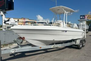 Chaparral is re-writing the rules on outboard boating. The 270 OSX is a trendsetter in design, performance, and function. The helm features a glass dash with dual touch screen Simrad displays. The cockpit is open, and spacious and features a multi-position sun lounger aft. The open-concept design carries forward into the bow area which features hinged storage beneath luxuriously appointed upholstery. Chaparral went to great lengths to create a powerful and agile craft that will provide a smooth ride in any kind of water. The 270 OSX was designed with the most advanced technology afloat today. Our Standard Dual 7″ inch Simrad touchscreen displays with controls are NMEA compatible and offer navigation, engine management, full gauge compliment, and can be customized to your personal preferences.