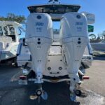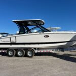 This is the all new Chaparral 310 OSX which is the perfect combination of a Runabout, Bow Rider, & Cruiser with a small cabin! It is powered by twin Yamaha 300 HP 4-Strokes & the Helm Master Joystick w/ Full Maneuverability. The boat is beautiful and loaded with electronics including two Simrad 12″ Multi-Function Displays, JL Audio Stereo, and some awesome Blue LED Cockpit Lighting. It also has a ton of nice options such as Air Conditioning, Helm Master Joystick, Bow & Cockpit Cover, Electric Toilet w/ Overboard Discharge, Bow Filler Cushion & Underwater Lights. This boat has a very unique layout that offers a ton of large seating and Lounging areas and gives you a small cabin with A/C so you can sleep over night or get out of the weather for a while. The Hard Top is huge and has a Sky Light built in making it feel very open in the cockpit. The boat also has a ton of storage in it for all kinds of Toys, Coolers, and Life Jackets.