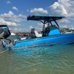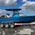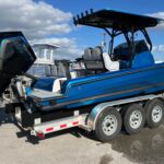 This 2025 Concept 27 Center Console is absolutely amazing! This is a Dealer Demo Boat. From the Electric Blue Painted Graphics to the Hi-Performance Ride this boat is a true Adrenaline Rush! It is powered by a Mercury Racing 400 HP V10 with only about 30 hours on it. It has a Full Boat Cover that covers all the way down the Hull Sides. It is set up with the best electronics package you can get including two Garmin 12″ 8612 XSV Units with the Garmin Empire Bus Digital Switching System integrated into them. This gives you all your switching controls for the boat such as all the Lighting & Pumps right on the Garmin screens keeping the Console looking very clean. There is also a Rubber Switch Panel just inside the Side Console Door so you can turn things on without your Garmins being turned on. The Hull Sides, Console and Top Deck are Painted with an incredible Blue paint. The List of other Options includes, Fiberglass Hard Top, Painted Hard Top, LED Underwater Lights (2) Blue, Painted Mohawk on Engine, VHF Radio, Battery Charger, JL Audio Stereo, Sliding Ice Chest, Leaning Post Storage Box, Freshwater Shower, Transducer, Stainless Steel Rub Rail, Live well in Transom, Fiberglass Side Netting Storage, Forward Bow Seating Backrests, Black Gel Hull Bottom, Garmin Empire Digital Switching, Smart Craft Connect, Black Oak Razor Light Bar, Painted Console, Marine Flooring (Dektek), Full Mooring Cover to chine. It does not have a trailer but we can get one made for it.