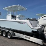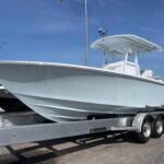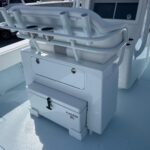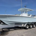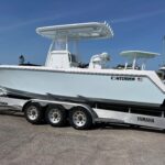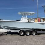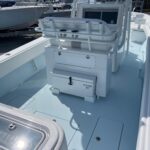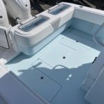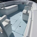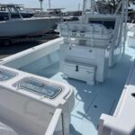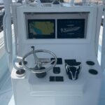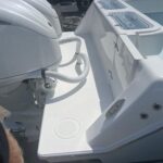 This beautiful 2025 Contender 30 ST Center Console is finally here! This is the new model with the completely flat swim platform (they got rid of the motor well). With increased space in the cockpit, ample seating, and the incredible power package this boat is the perfect blend of fishability, performance, and comfort. The boat is Ice Blue and is powered with twin Yamaha 300 HP 4-Strokes with the Digital Electric Steering making it a blast to drive. With this power the boat cruises at 45 MPH getting 1.8 MPG. It is loaded with great options and already has two Garmin 16″ Screens, 8616 XSV’s. The Garmin units have the Empire Bus Digital switching on them so you control the whole boat right thru the Garmin screens but there is also a switch panel in the console incase you do not want to turn the Garmin’s on. Some of the notable Options include Forward Seating with Removable Forward Facing Backrests, Electric Head, Leaning Post Custom Sport w/ Wrap Around Backrest & Frigid Rigid Ice Chest, Hard Top, Speaker Boxes, and the Powder Coating Package. Any additional Electronics or accessories are available for us to install to your specks weather it be a Trolling Motor, Radar, additional Lighting, or Stereo… We have a big rig shop that specializes in this type of rigging. The Head is mounted on a slider to allow you to keep it out of the way and make more space in the console.