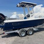 This Robalo 226 Cayman came out amazing! The Trailer is Included!!! It is beautiful in the Biscayne Blue. She also has awesome performance with the Yamaha 200 HP SHO! They layout is very well thought out and allows you to do just about anything from fishing to entertaining and cruising. The forward seats fit very well and give you nice storage in them. The boat is loaded with options including the Hard Top, Simrad NSS9 EVO3 Multi-Function Display, Dual Battery w/ Switch, Trim Tabs w/ Indicators, Sea Deck Helm Mat, Porta Pottie, Leaning Post w/ Flip Up Bolsters, Cooler, Powder coating, Removable Bow Backrests, Stainless Drink / Rod Holders, Custom Anchor, Hydraulic Jack Plate, and Trailer.