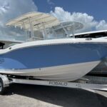 This 2025 Robalo R200 Center Console is available right now and is powered with the new Yamaha 150 HP 4-Stroke with the new Integrated Hydraulic Steering. The Trailer is included!! It has beautiful Steel Blue hull sides. The boat has some wonderful features and options including the T-Top (White Powder Coated), Tilt Steering, Removable Bow Seating Backrests, Custom Anchor, & 5 Year Premier Level Limited Component Warranty. This is a very large 20 footer, it feels more like a 22 foot boat. The Layout is very versatile and perfect for so many things like Fishing, Entertaining or Cruising while still being a very low maintenance boat. It is very easy to go out in and have fun then clean and put it away without much work at all.