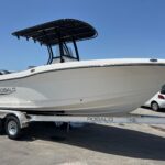 TRAILER INCLUDED!!! This Robalo R200 Center Console is available right now and is powered by a Yamaha 150 4-Stroke! The boat has a very open layout with great seating in the Bow w/ Forward Facing Bow Backrests and two nice seats in the stern. There is a Live Baitwell in between the rear seats making this a very versatile boat great for cruising and fishing. It is loaded with options including T-Top w/ Black Powder Coating, Simrad G09 Touch GPS / Fish Finder, Tilt Steering, Dual Battery System, Trim Tabs w/ indicators, Porta Pottie, Stainless Drink / Rod Holders (2), Removable Bow Backrests, Leaning Post – Black Powder Coated, Custom Anchor, and Trailer.