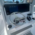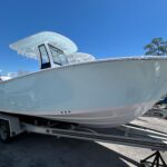 New 2025 Sportsman Heritage 231powered by a Yamaha F300 XSB motor. Ice blue hull sides, under t-top color match, white powder coat, Polar White upholstery. Garmin 12″ screen, Garmin Apollo RA670 stereo with SportTuN and speakers throughout. Premium dual chair leaning post with flip up bolsters, under leaning post tackle storage, on board battery charger. Call today to set up a showing and sea trial.