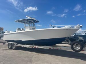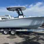 This is an awesome looking new model Sportsman 212 Open Center Console! She has Storm Cloud Grey hull sides & bottom w/ Black Powder Coating. Powered by the a Yamaha F200XSA2 w/ Digital Electric Steering and Digital Throttle & Shift. There are a ton for Standard Features including Sea Keeper Ride Auto Trim Tab System. These Sea Keeper Ride Trim Tabs are amazing and automatically correct the running attitude and side to side motion as you are running thru the water. This boat is already equipped with Electronics including a Garmin 12″ Screen, VHF Radio, & Fusion Stereo w/ JL Audio Speakers. Other Options include the Premium Dual Chair Leaning Post w/ Flip Up Bolsters & Arm Rests, Under Leaning Post Tackle Storage, Batter Charger, and Porta Pottie. The Open 212 features a larger capacity livewell and more open cockpit space for the more serious angler. Overall, more room behind the leaning post and a walk-through transom makes this 21 footer a great fishing platform. Standard amenities include a Garmin 12” touchscreen GPS, Garmin CHIRP thru-hull transducer, wrap-around bow seating, bow & cockpit bolsters and much more.