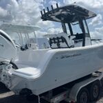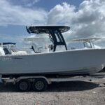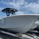This Sportsman 232 Center Console is a show stopper! Powered by the Yamaha 300 4-Stroke w/ Digital Throttle & Shift as well as the Electric Power steering it is as Powerful as it is luxurious. These advanced features make this boat feel super smooth to operate and easy to drive. It is also equipped with the Sea Keeper Auto Trim Tab System which automatically keeps the boat stable while running. The boat looks Stunning with the Storm Cloud Grey Hull sides & Bottom matched w/ the Black Powder Coating and Black Under the Hard Top. It comes Standard with the 12″ Garmin Multi-Function Display, VHF Radio, and Stereo w/ 8 JL Audio Speakers. The boat is loaded with nice options including the Premium Dual Chair Leaning Post w/ Flip Up Bolsters, Under Leaning Post Tackle Storage, On-Board Battery Charger, Porcelain Head w/ Overboard Discharge, & Anchor Windlass.