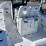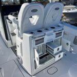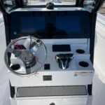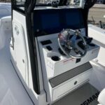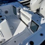 Climbing on-board the Open 262, you are met with amenities you’ve never seen on a 26 foot boat. Starting with the dual side entry doors which open 180-degrees for unobstructed water-centric access. For shade, a feature-packed fiberglass hard-top with lights, speakers and rod holders. At the helm, state-of-the-art standard electronics and protection all the way around thanks to the integrated tempered glass windshield. Gorgeous twin aquarium livewells at the transom accompany the fishing-ready cockpit layout. And let’s not forget, a modern finely-tuned hull with superior ride designed for the latest engines.