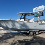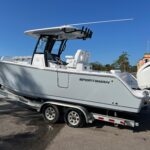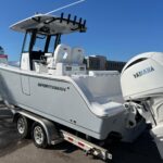 This 262 Sportsman is just an awesome boat all the way around! From the looks to the functionality this boat has it all! It is Powered by twin Yamaha 200 HP 4-Strokes with the new Digital Electric Steering, (F200XSA2). It is a very open boat with plenty of space in the rear cockpit as well as in the bow area. It is loaded with options and features including the new Sea Keeper Auto Trim Tab System, Double Side Dive Doors, Two Garmin 1243XSV Multi-Function Displays and Auto Pilot. Other Electronics include the JL Audio Speakers, Battery Charger & Garmin VHF Radio. This new model has a very unique Layout with Double Side Dive Doors and Double Aquarium Live wells with a nice Fold Down Bench Seat in the Transom. There is beautiful seating and lounging space in the bow area which has Forward Facing Backrests. Other Features include the Windlass for the Anchor, Electric Toilet, Underwater Lights (Blue LED), Tackle Storage and Freshwater Shower.