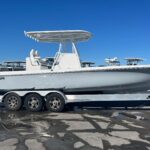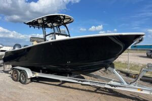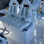 We are very excited to have the new Contender 29 Bay in stock now! This boat is powered by twin Yamaha 300 HP 4-Strokes with Digital Throttle & Shift. It is equipped incredibly well with Sea Keeper RIDE, Twin Power Pole 10′ Blades, Dual Garmin 16″ Displays, & Stereo w/ JL Audio Speakers. The Sea Keeper RIDE is an Automatic Trim Tab System that keeps the boat stable while underway. It works so well, you have to try it. Sitting at the helm is a great experience, the console is absolutely beautiful. The two Llebroc Helm Chairs are super comfortable and look amazing. The seats are on electric sliders so you can decide how far you want to sit from the steering wheel. The layout is super versatile as it has a ton of open space keeping the fishability very high while still having great seating. The interior is very impressive but what really makes this boat fun is how it performs in the water. It will out perform any boat in its class. The 29 Bay is fast, solid, smooth & dry, and gives you the confidence to run offshore as well as inshore. If you are in the market for a hybrid style Center Console you have to try this one out.