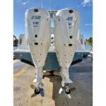 AVAILABLE NOW! 2026 Contender 35 ST powered by twin Yamaha 450 XTO! Less than 50 hours of use and fully transferable warranty on the motors good through 10/2030. Gorgeous “Stars and Stripes” full hull color. Too many factory options to list. Highlights include: extra large T-top with Polycarbon enclosure, forward coffin box lounge, M Series leaning post with mezzanine seat, lite gray cushion color, and much more!