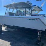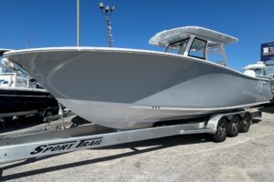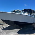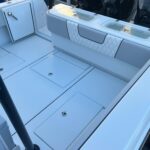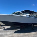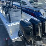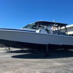 This is the al new 2026 Contender 39 ST sporting the New and Improved Console and Hard Top. Powered by Triple Mercury 425 HP V10’s this thing has the power to keep you ahead of the whole pack at 75 MPH! The New Console is absolutely Incredible! It includes a Curved Windshield & Recessed Dash area which make it perfect for the Black Acrylic Dash and Inset Garmin 22″ Displays. It also has a beautiful Helm Pod, Large Glove Box, (4) Deep Cup Holders, (2) Wireless Phone Chargers & a new Fiberglass Entry Door. The console is a little lower now and gives you awesome visibility. The New Hard Top is also amazing! It has a great shape to it & includes a built in area to flush mount items like a VHF Radio or smaller screens, (4) Speakers, & Flush Mounted Spreader Lights. This boat also has the Stadium Seating with Llebroc Helm Chairs and Second Row Seating with Folding Arm Rests, Coffin Bow Lounge, and Forward Seating recessed into the Deck. This design keeps the Bow as open as possible while giving you incredible Seating & Storage. Other Options include Electric Toilet, Gemlux Outriggers, Freshwater Shower on Transom, Freshwater Washdown, Raw Water Washdown, Shore Power 30 AMP, Mercury Joystick Piloting, Transducer (B275LHW), Forward Seating Bow Backrests, Electric Cooler Slide & Black Powder Coating. If you are looking for the Ultimate Center Console to Fish Hard or just to Play on this is a must see!