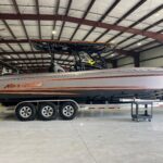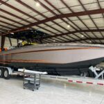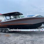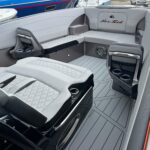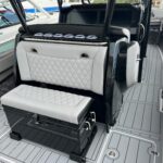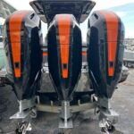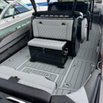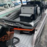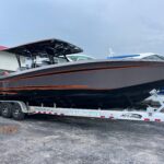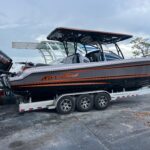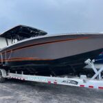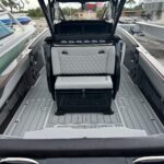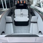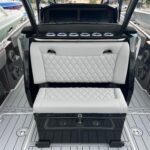This 2026 Nor-Tech 340 Sport Center Console is in production right now and will be available very soon. The first two pictures are the actual boat just after it got painted. The other pictures are of a previous boat we had. If you are looking for the ultimate High Performance center console you have just found It. This boat is powered by triple Mercury 400 R V10’s & Digital Zero Effort controls. The custom painted graphics are incredible. The layout of the boat is very well done and offers a ton of seating and lounging space while still easy to move around the boat. This boat has a Bow Thruster making docking very easy. The center cabin is excellent for escaping bad weather, sleeping, or storing luggage for long trips to the islands. The Forward Sun Lounge up front in combination with the U-Shaped seating gives you a ton of comfortable lounging space. The center cabin feels very roomy and open. There are large windows on the ceiling and on the side of the console that make the cabin feel very open. The boat is loaded with the best electronics in the industry including the new Garmin 8622 XSV multi function displays (22″ GPS, Fish Finder) and JL Audio Stereo with JL Audio speakers. The Boat is rigged w/ Sea Zone which puts all the switches to operate the boat right on the Garmin Screens. The trailer is not included but when can order one. This boat is loaded with the options below…