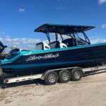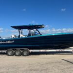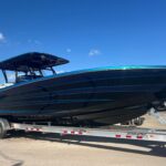 This Nor-Tech 390 Sport Center Console is available right now! It is absolutely beautiful and it is powered with Quad Mercury 400 HP Racing Engines. It has an incredible Graphics Package. This boat is loaded with options including Dual Row Seating, Bow Thruster, Garmin 9222’s (22″ Screens), Auto Pilot, Radar, and LED Light Bar, VHF Radio. The layout is awesome with the Second Row of Seats and the Club Sport Rear Seating you really have the most comfortable set up available. The Console has a cabin in it with a bed and Electric Toilet. It feels very open in there. the Bow area has a large Lounge and Forward Seating with an Electric Table. The boat is set up w/ the Coast Key Wireless Engine Lanyard w/ Remote Start / Stop, & Wireless Battery Switch Operation (No more turning multiple Battery Switches). This boat also has a Huge Stereo w/ LED Color Changing Lighting in the Speakers. RGB Lighting in the Cockpit as well. Other options include, XM Satellite Weather / Radio, Reverso Freshwater Flush System (Auto Flushing), Sea Deck Flooring, Windlass, & Marine Guardian Security System.