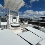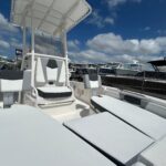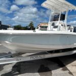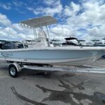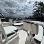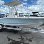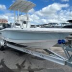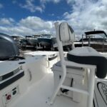 Great boat for our local waters – shallow draft, lots of seating for comfort at the sand bar and world class fishing features make this new Robalo 206 Cayman a home run. This boat is powered by a Yamaha F150 XD with integrated hydraulic steering. Lots of options on this one including a Garmin 943XSV display, ice blue gel coat, t-top with white powder coat, trim tabs, dual batteries, Sea Deck helm pad, dive swim platform and much more. Call Erickson Marine today for more information.
