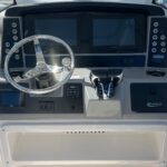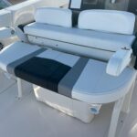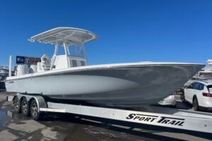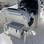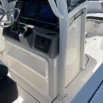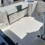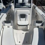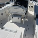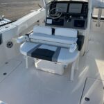 This is a beautiful new Robalo R250 powered by twin 150 HP Yamahas. The hull design on this boat is incredible and it has a very well thought out Layout which concentrates on comfortable seating and fishability. The rear cockpit feels huge! It has a wonderful fold down bench seat in the back that is long enough for Three people. The helm seat is very ergonomically designed and is easy to get into, sit to drive & see over the console. The Helm Seat has a Fold Down Backrest that transforms it into a Rear Facing Bench. There is an awesome Electronics Package in the boat including two Garmin 12″ Displays w/ Engine Data, VHF Radio, & JL Audio Stereo System! It also has an Electric Toilet in the console. Other Options include the Bow Table, Bow Filler Cushion, Stainless Drink / Rod Holders, Leaning Post w/ Reversible Backrest, 2 Rod Holders & Arm Rests, Stainless Anchor, & Side Entry Ladder.
