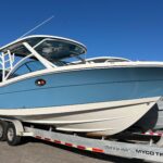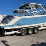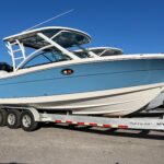This is a brand new Robalo 317 Dual Console and it is powered by the new Yamaha 350 HP 4-Strokes providing incredible performance and reliability. These are also set up with the Yamaha Helm Master Joystick & Auto Pilot. The layout in this boat is incredible! There are so many well thought out designs including the rear Sun Lounge which has two backrests that move around to allow you to create the perfect position for you. It also has a Sure Shade that deploys out of the Hard Top to give you excellent sun coverage while lounging there. This boat also has the optional Forward Fly Shade for the Bow area. There is a nice berth/ closet area on the port side which makes for immense storage or a place to get out of the weather if it gets bad. There is an Electric Head on the Starboard side which is very easy to get in and out of. It has an awesome electronics package including a Garmin 16″ Screen, VHF Radio, JL Audio Stereo, and Auto Pilot. It has a Live well, Side Dive Door and a great Fish Box / cooler. All this combined makes for the perfect boat for entertaining family and friends or offshore fishing! Other Options include, Atlas Blue Hull Side Color, Yamaha Helm Master Joystick, Bow & Cockpit Cover, Cockpit Gas Grill, Forward Fly Canvas Shade, Underwater Lighting, Lenco Pro Trim Tab System, Overboard Discharge, Stainless Drink / Rod Holders, Wetbar, Polished Stainless Anchor.