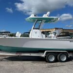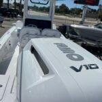 This Sportsman Masters 247 Center Console is absolutely rigged to the max! It is powered by a Mercury 350 HP V10 delivering incredible performance and the most luxurious handling available. This boat has just about everything including the Half Tower with 2nd Station, Garmin Force Kraken Trolling Motor, Two 12″ Garmin Screens and a 3rd Garmin screen up in the Half Tower, JL Audio Stereo System Upgrade, Bow Cushion Set, Removable Bow Backrests, Premium Dual Chair Leaning Post, Cooler Slide out Track, Under Leaning Post Tackle Storage, 7 ProMariner Battery Charger. These boats come with some awesome Standard Features including the Sea Keeper RIDE Auto Trim Tab System. This system corrects the rocking back and forth while underway automatically. It also comes with the Hydraulic Jack Plate, Underwater Lighting, Glass Windshield, Total Access Hatch & Aquarium Style Live Wells.