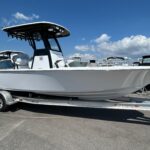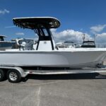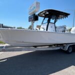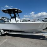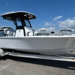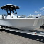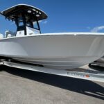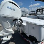 New 2026 Sportsman Masters 247 OE powered by a white Yamaha F300 XSB motor. The OE model includes a large coffin box/lounge seat in the bow. The boat is white with black powder coated and black under the hard top. Options include 2 Garmin 1243 XSV multifunction displays, Yamaha auto pilot, Promariner 3 bank battery charger, porta potty in head, and slide out rack for Yeti cooler. Beautiful boat with a functional layout and a very solid ride. Call Erickson Marine for more information.