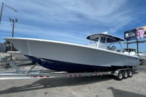 The Masters 267OE will quickly become your ultimate fishing and cruising machine. The deck is designed for all the way around fishability but still retaining a forward and aft casting deck. At the transom, two iconic aquarium livewells with a deep center seat. Opening the seat reveals great access to the bilge and other important components. Two comfortable large seats at the helm covered by a beautiful fiberglass hard-top packed with amenities. Up front, an extended chaise lounge with a massive fish box below, an additional livewell, anchor compartment and additional storage. This versatile boat will quickly adapt to your current activity from hard-core fishing to a great comfortable cruiser.
