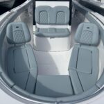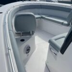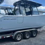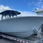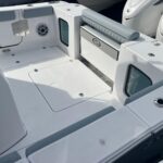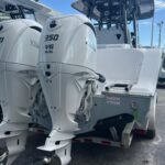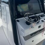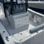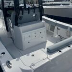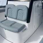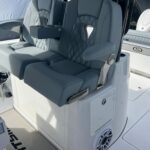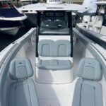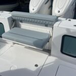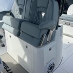 This Sportsman Open 302 Center Console is a Show Stopper! It is absolutely Beautiful and it has an amazing Power Package with the Yamaha 350 HP 4-Strokes! Joystick Equipped!! It comes Standard with Sea Keeper RIDE Auto Trim Tab System! The boat is Storm Cloud Grey with Black Powder Coat and Black Under the Hard Top. The boat is loaded with Electronics including two Garmin 16″ Multi-Function Displays, Radar, Yamaha Helm Master Joystick, Auto Pilot, VHF Radio, and Battery Charger. The new Upholstery feels awesome, it is super smooth and looks great. Other options include the Premium 60/40 Bench w/ Bolsters, Edson Comfort Grip Steering Wheel w/ Power Knob, and the ProMariner Pro Tournament Elite 3 Battery Charger. This boat gives you the ability to run Offshore and Fish Hard as well as Entertain Friends and Family. The layout is very well thought out for the perfect combination of Fishability and Comfort. The Forward Bow Seating area has a Table that comes out of the floor with the push of a button making it effortless to store and use. You feel in total command at the Helm with the Steering wheel and controls easy to reach while standing or sitting. The Yamaha Helm Master Joystick gives you amazing control of the boat while docking or hovering over a spot.