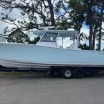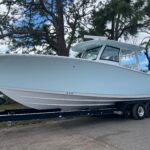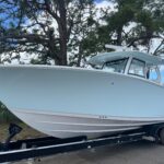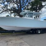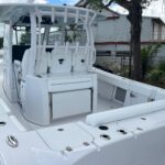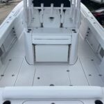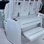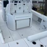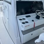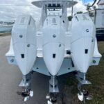 This Sportsman 352 Open is in stock right now and powered with the new Triple Mercury 400 HP V10 4-Strokes w/ Joystick Piloting!! This boat performs incredibly well with these engines. Sportsman did an awesome job in the design of this boat. There is so much to offer including the Air Conditioned cabin in the console, Mercury Joystick Steering w/ Sea Station, two Garmin 22″ Multi Function Displays, Open Array Radar, & a wide array of seating & Lounging space. The boat also features two side Dive Doors, two 30 gallon Live wells, & (2) Electric Reel Outlets. The Cabin is Airconditioned and powered by a 12 volt battery operated system and there are also vents on the dash for the drivers. The stereo is all JL Audio and has (10) Speakers, (2) Subs, and (3) Amps. The access into the bilge compartment is gigantic, all the equipment in the bilge is extremely easy to get to and there is a lot of storage in there. The seating is amazing and offers Club style fold down benches in the rear cockpit. There is also very comfortable seating in the bow with an Electric Table / Filler Lounge allowing you to sit up there and have lunch with the table up or lower it down to use as a big sun lounge or lower it all the way down to make it completely open.