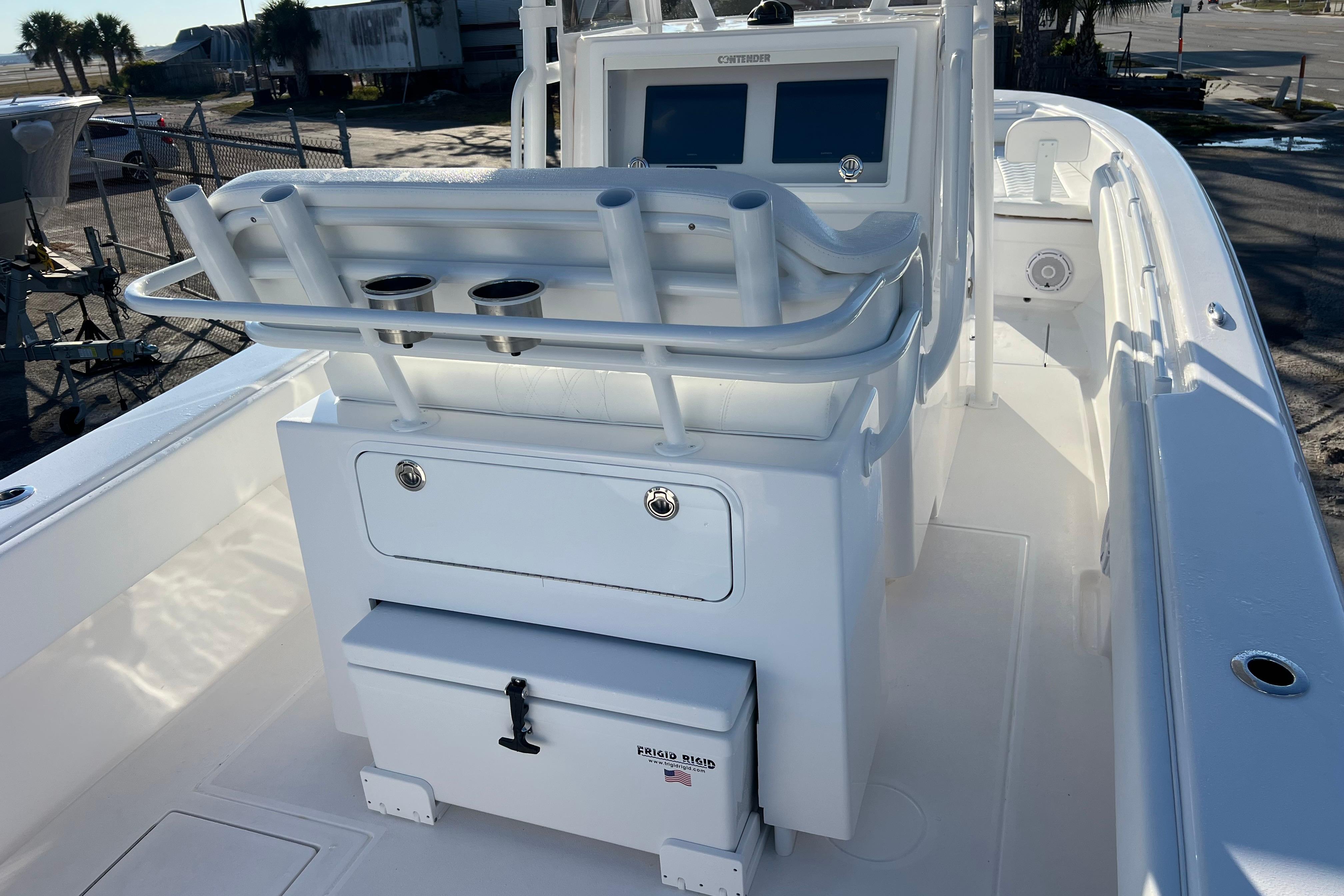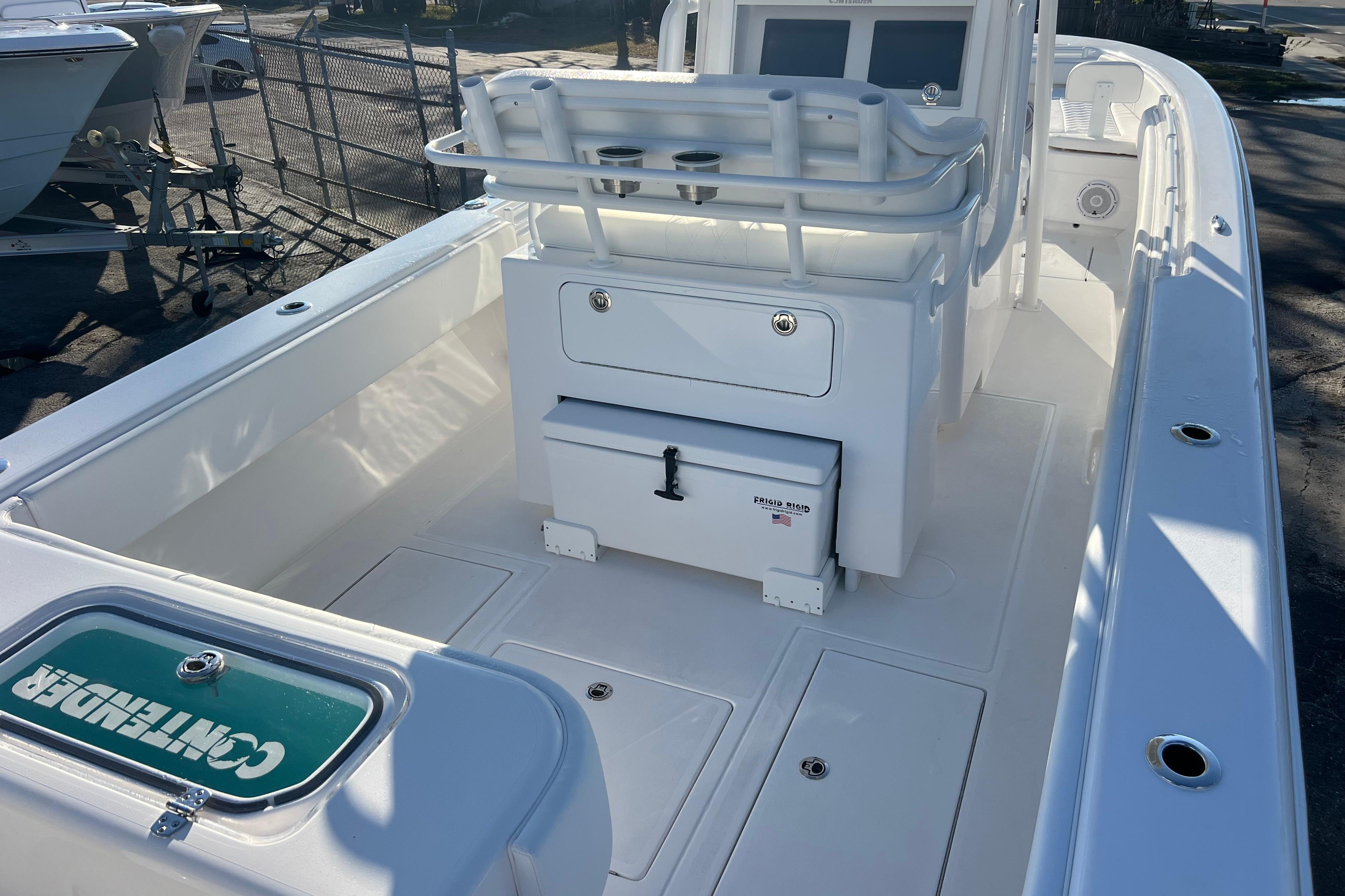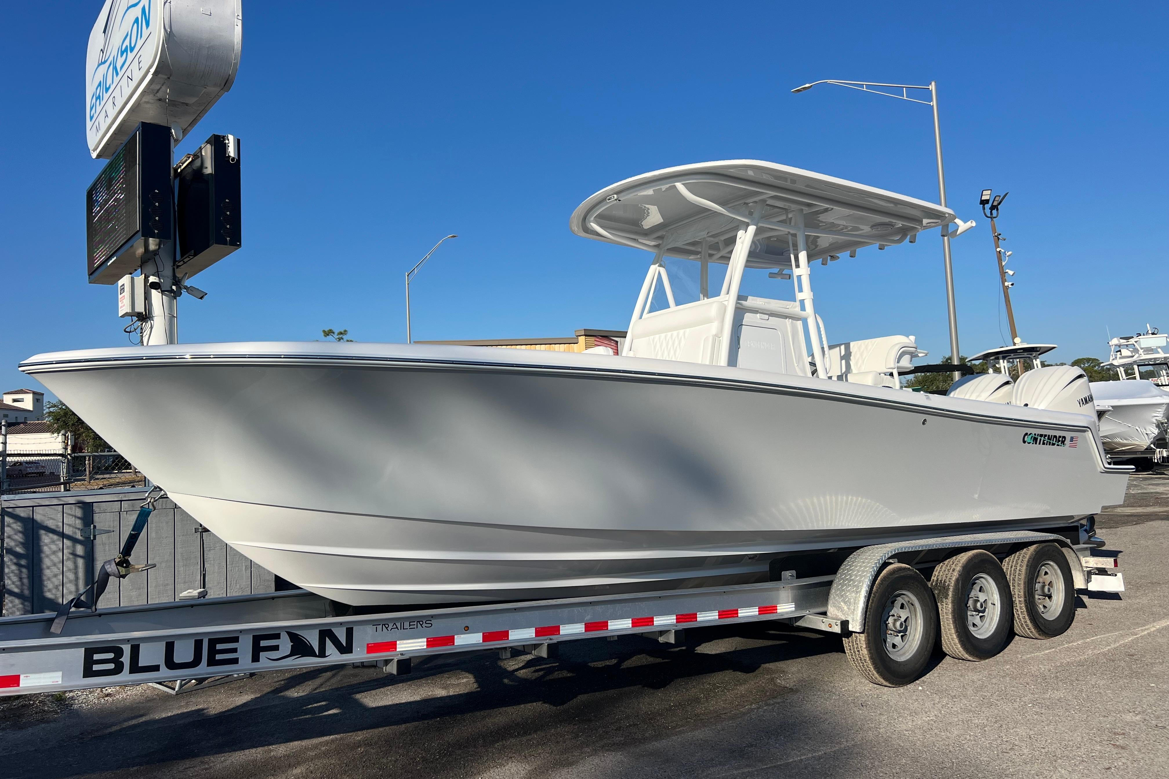 This brand new 2026 Contender 28 T Center Console does it all! It is powered by twin Yamaha 300 HP 4-Strokes w/ Digital Throttle & Shift & Digital Electric Steering. This model is the newly designed deck with sleeker deck lines. It is gorgeous! The 28 T is a hard core fishing machine that can be used for just about anything. It is now Standard with the Sea Keeper RIDE Auto Trim Tab System which automatically keeps the boat stabile while underway. The boat is loaded with nice seating for everyone. It has some very nice features including the upgraded console with Electronics Box w/ Sliding Door & Garmin Electronics including two Garmin 8612XSV's & a JL Audio Stereo System. The Garmin screens also have all the switching for the boat built into them and it has a switch panel as well for redundancy. The boat has the Hard Top with LED lighting & Electric Toilet. The list of other options includes, Transducer Install, Additional Battery w/ switch, Electric head w/ Y-valve, Custom Leaning Post w/ Wrap Around Backrest & Frigid Rigid Cooler, Powder Coating Pkg., Finger Grip Handrails on T-Top, King fish rod holders, Live well light, Live well clear lid, Gemlux flush mount scoops, Fresh water, Garelick boarding ladder, Pop-up stern cleats, Raw water wash down, Steering wheel - stainless w/ knob, Forward bow seating - Bench Style, Backrests - Forward Facing for Bow Seating, Cockpit coaming bolsters, Upholstery Bentley Stitching, Under gunnel rod racks, Rub Rail - Stainless Steel Insert.