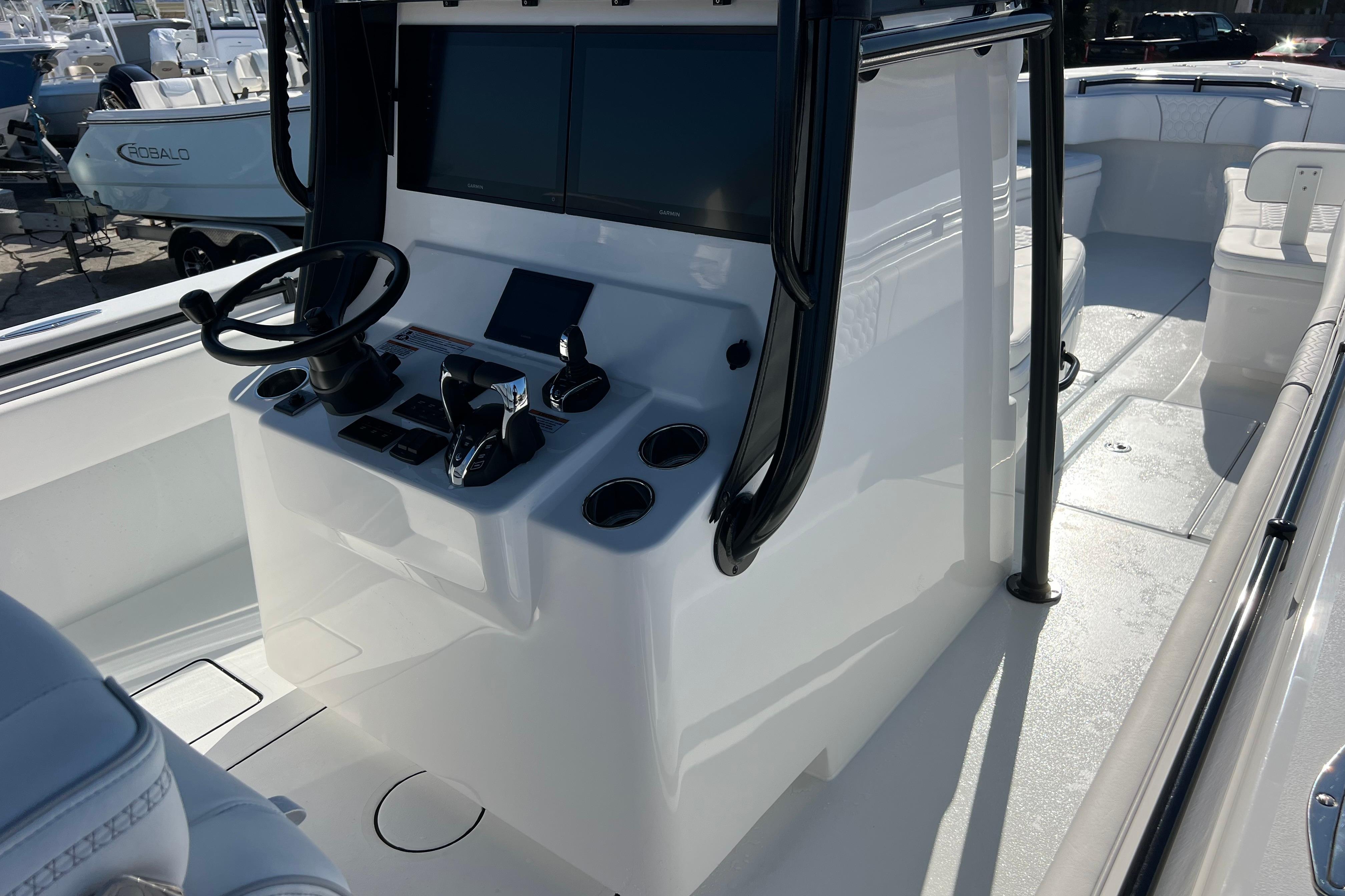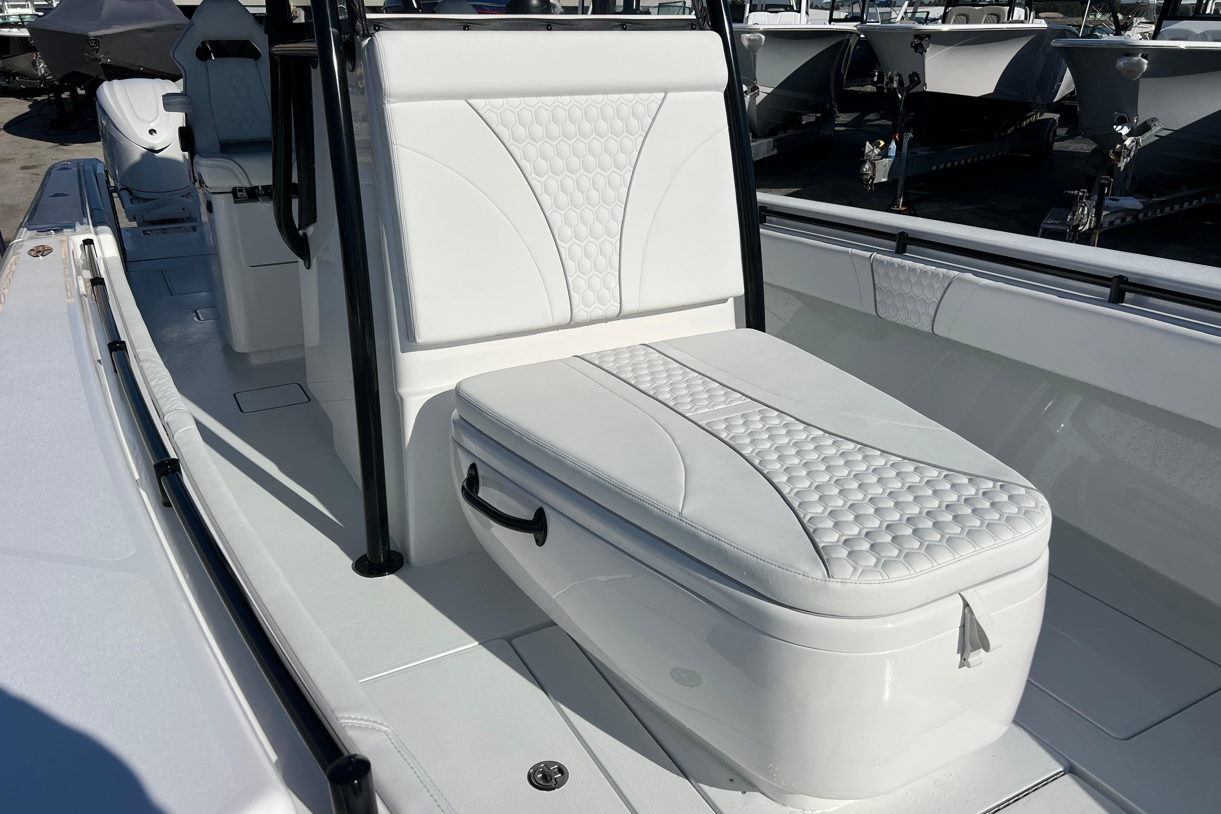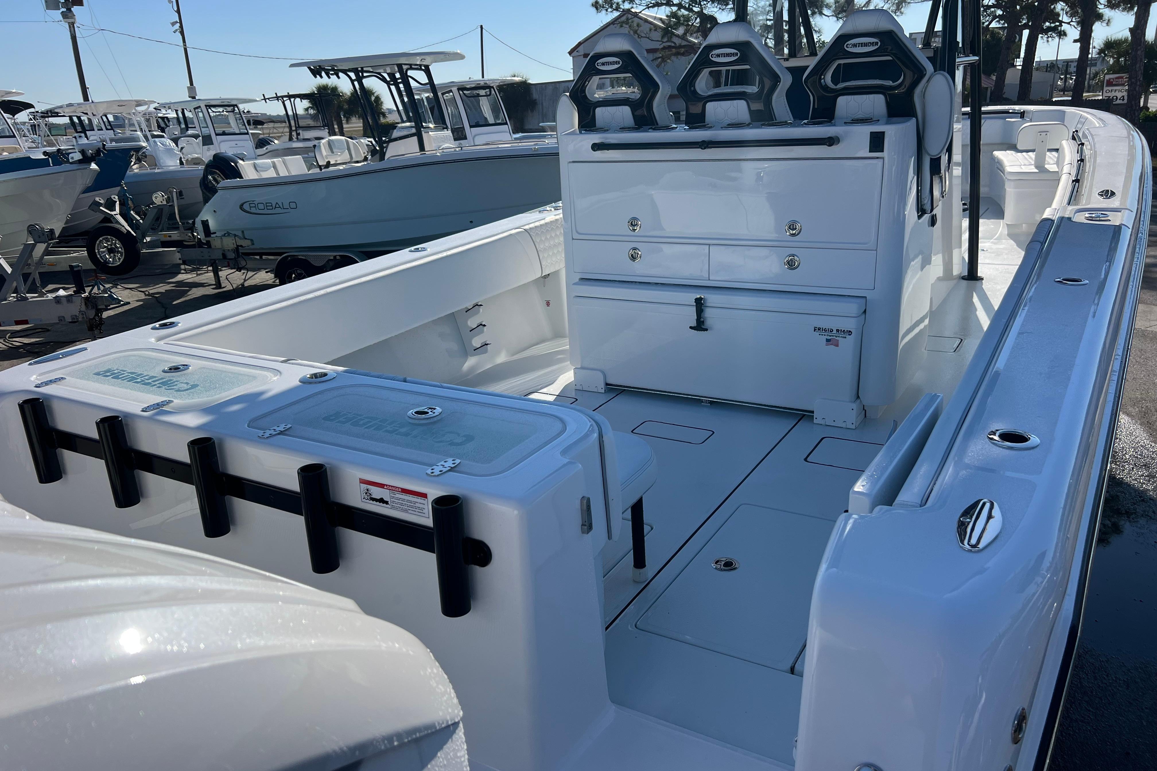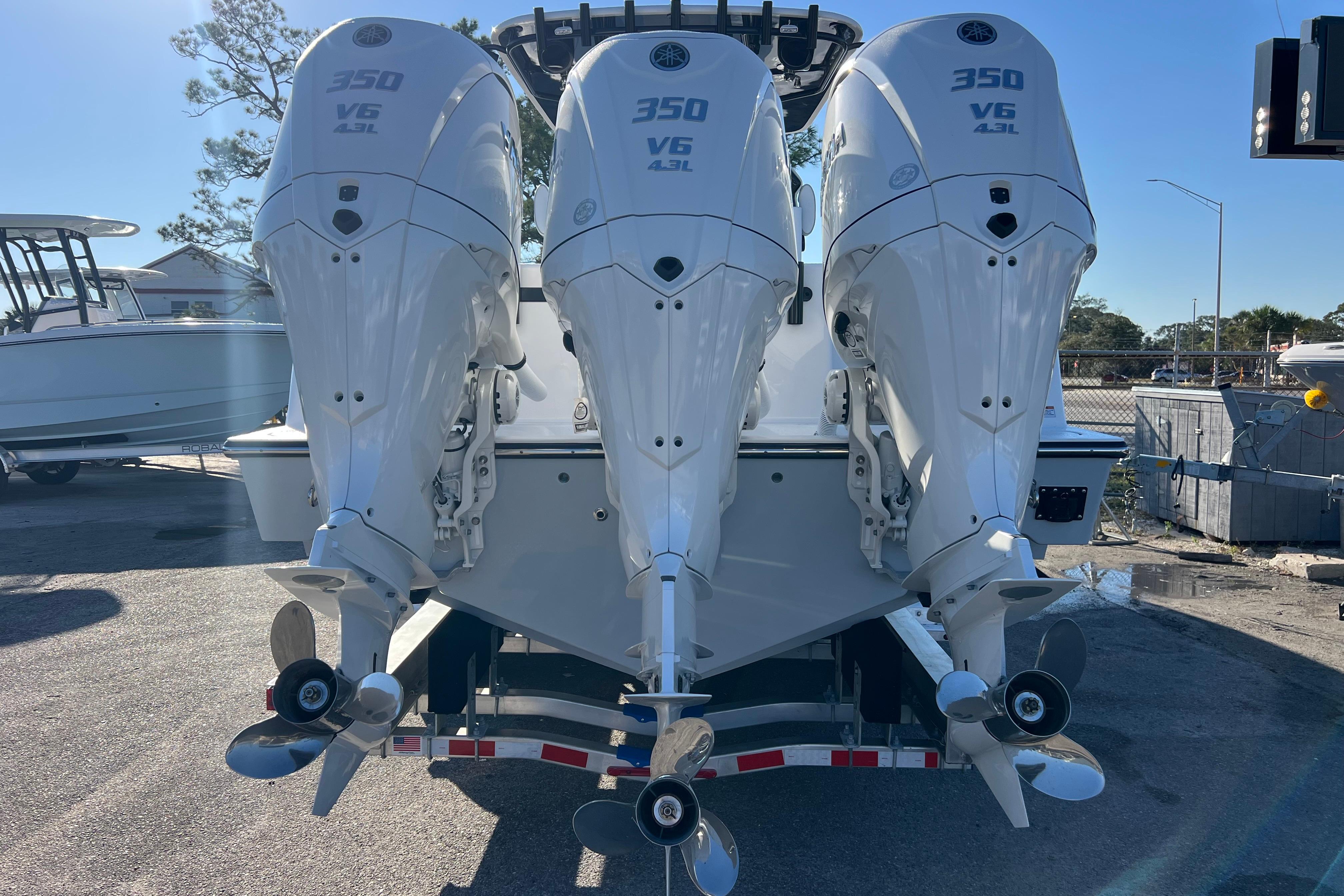 Looking for the ultimate in Fishability, Performance, and Comfort? Look no further than this stellar 2026 Contender 35ST! This boat is powered by Triple Yamaha F350 XSA motors with Yamaha Helm Master Joystick controls! The boat is Loaded with some incredible options including twin Garmin 9219 screens with a powerful GSD 28 sonar module, Llebrock Racing style helm seats, recessed Forward Seating, Forward lounge, cockpit coaming bolsters, Anchor Windlass & Electric Toilet. The boat has a beautiful Kingston Gray hull paired w/ Black powder coating. It really has an impressive look to it! Other stand out Options include, Gemlux Outrigger Bases, (2) Electric Reel Outlets, Transom Rod Rack, Stainless Pump Box System, & Shore Power. Call Erickson Marine in Sarasota, FL today for more information and to set up a sea trial. Contender has always been well known for producing some of the best performing center console fishing boats on the water, and the 35ST, goes beyond expectations. The innovative dual step design provides dramatic performance increases not only in speed, but also in fuel efficiency, and handling. The 35 Stepped hull’s one level deck, massive fish and storage boxes, and of course the incomparable ride, make this is a fisherman’s dream.