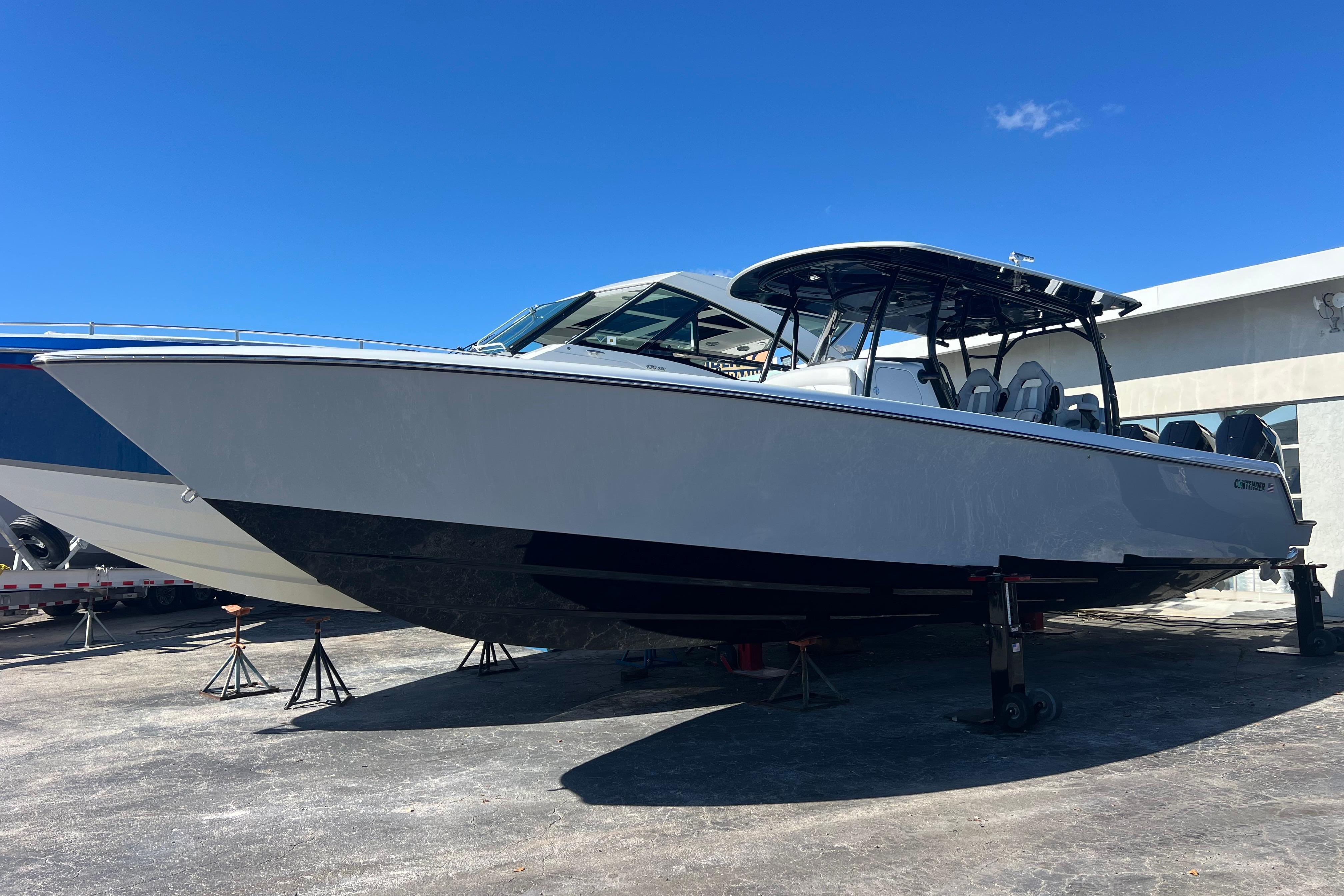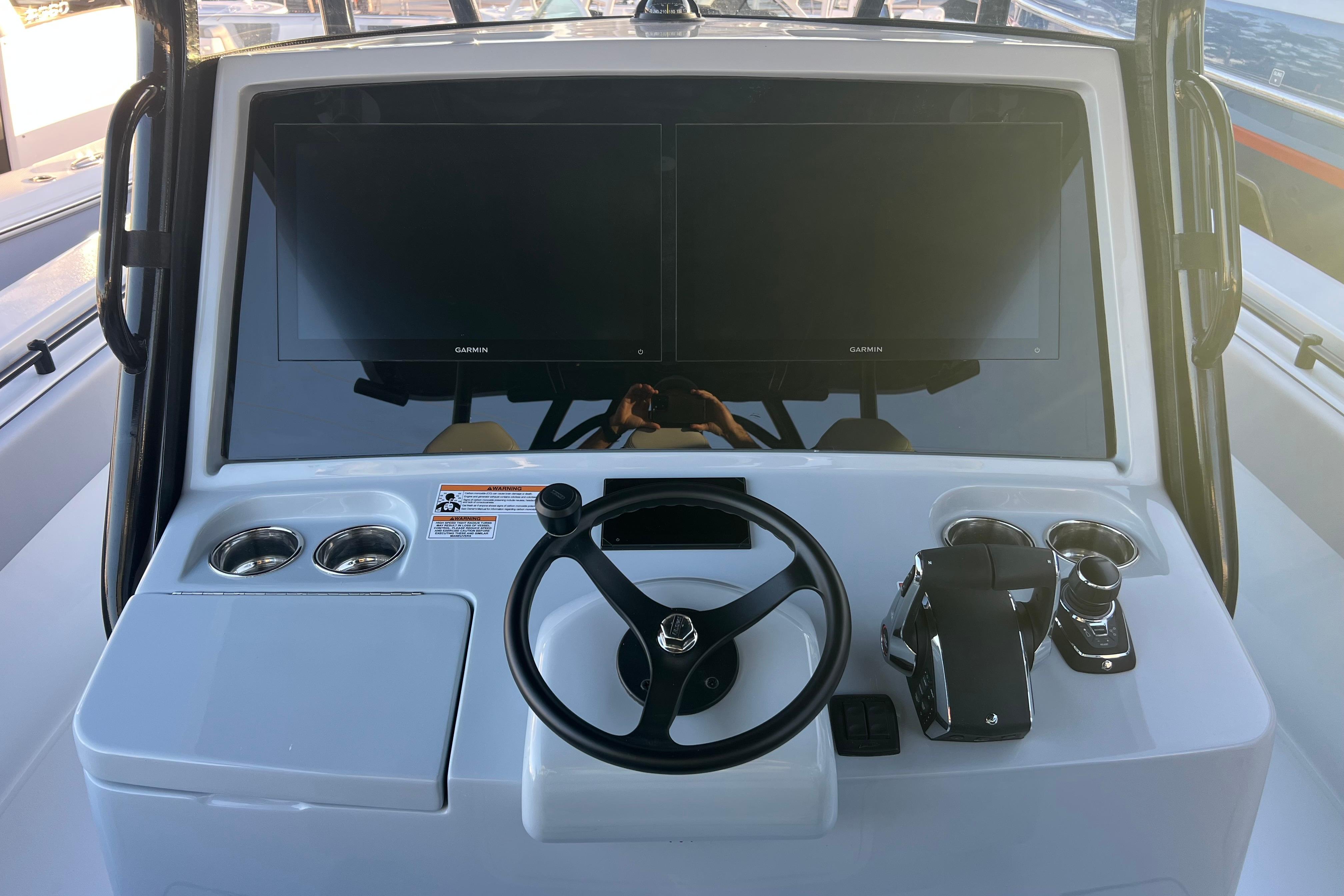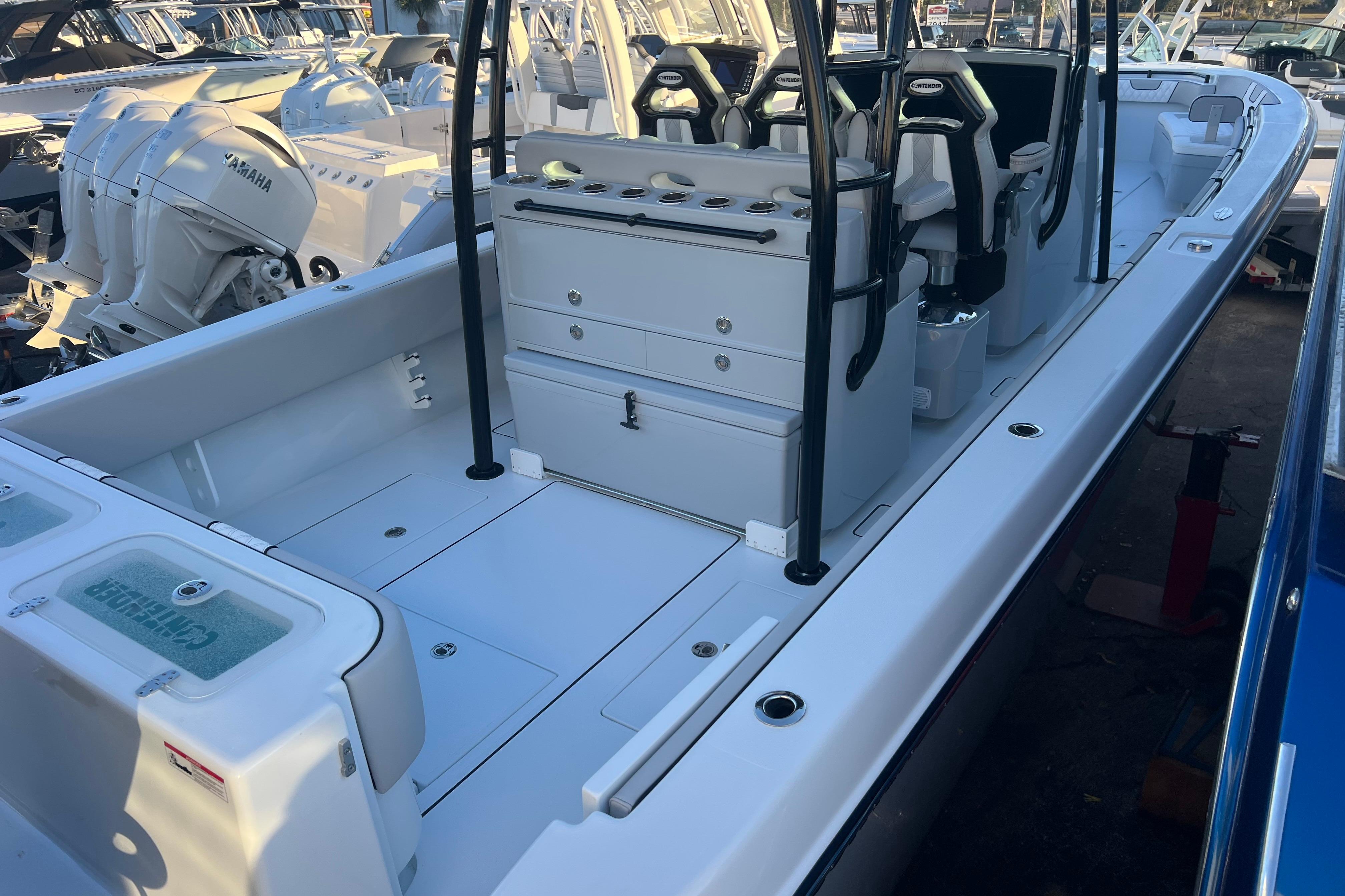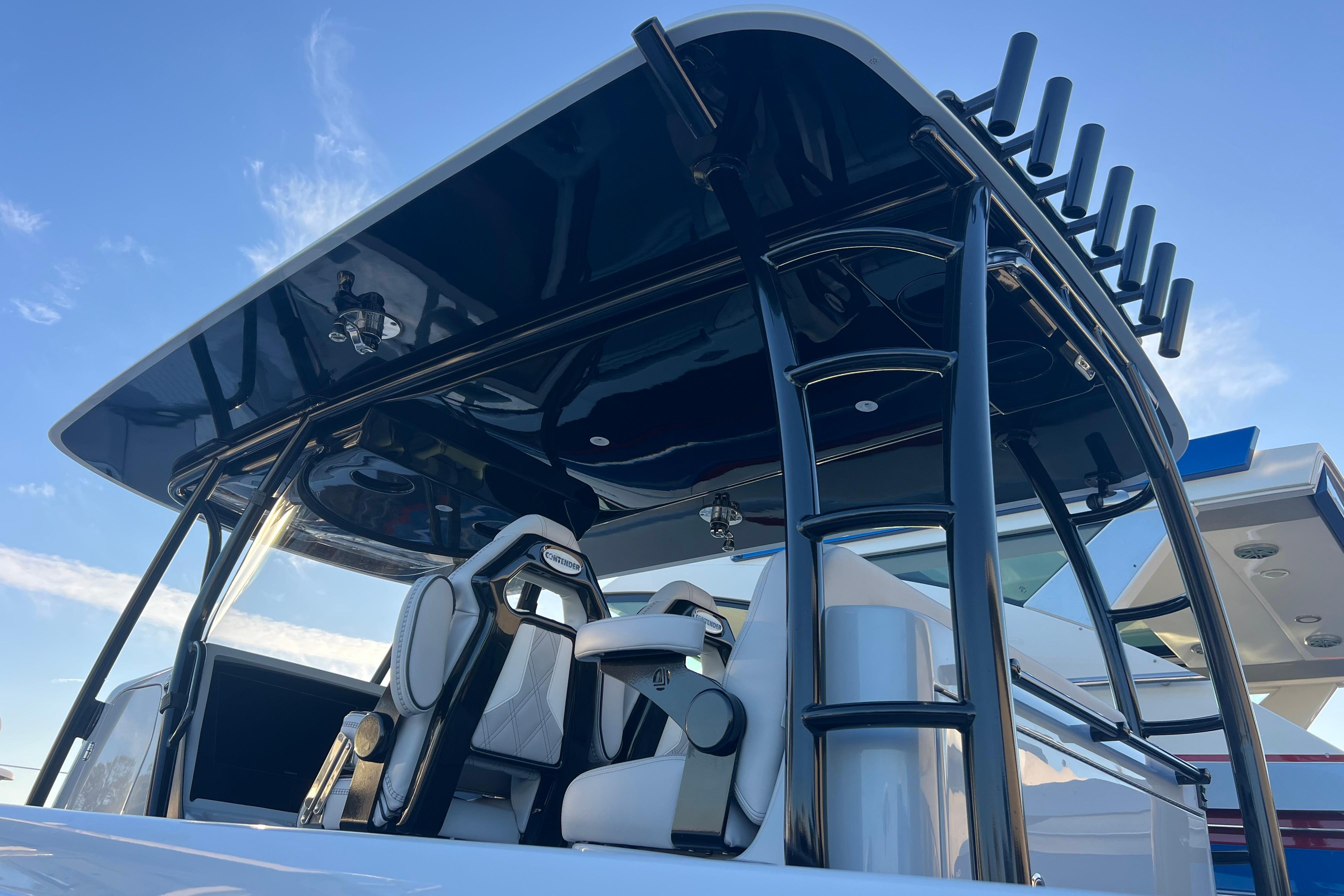 This is the al new 2026 Contender 39 ST sporting the New and Improved Console and Hard Top. Powered by Triple Mercury 425 HP V10's this thing has the power to keep you ahead of the whole pack at 75 MPH! The New Console is absolutely Incredible! It includes a Curved Windshield & Recessed Dash area which make it perfect for the Black Acrylic Dash and Inset Garmin 22" Displays. It also has a beautiful Helm Pod, Large Glove Box, (4) Deep Cup Holders, (2) Wireless Phone Chargers & a new Fiberglass Entry Door. The console is a little lower now and gives you awesome visibility. The New Hard Top is also amazing! It has a great shape to it & includes a built in area to flush mount items like a VHF Radio or smaller screens, (4) Speakers, & Flush Mounted Spreader Lights. This boat also has the Stadium Seating with Llebroc Helm Chairs and Second Row Seating with Folding Arm Rests, Coffin Bow Lounge, and Forward Seating recessed into the Deck. This design keeps the Bow as open as possible while giving you incredible Seating & Storage. Other Options include Electric Toilet, Gemlux Outriggers, Freshwater Shower on Transom, Freshwater Washdown, Raw Water Washdown, Shore Power 30 AMP, Mercury Joystick Piloting, Transducer (B275LHW), Forward Seating Bow Backrests, Electric Cooler Slide & Black Powder Coating. If you are looking for the Ultimate Center Console to Fish Hard or just to Play on this is a must see!