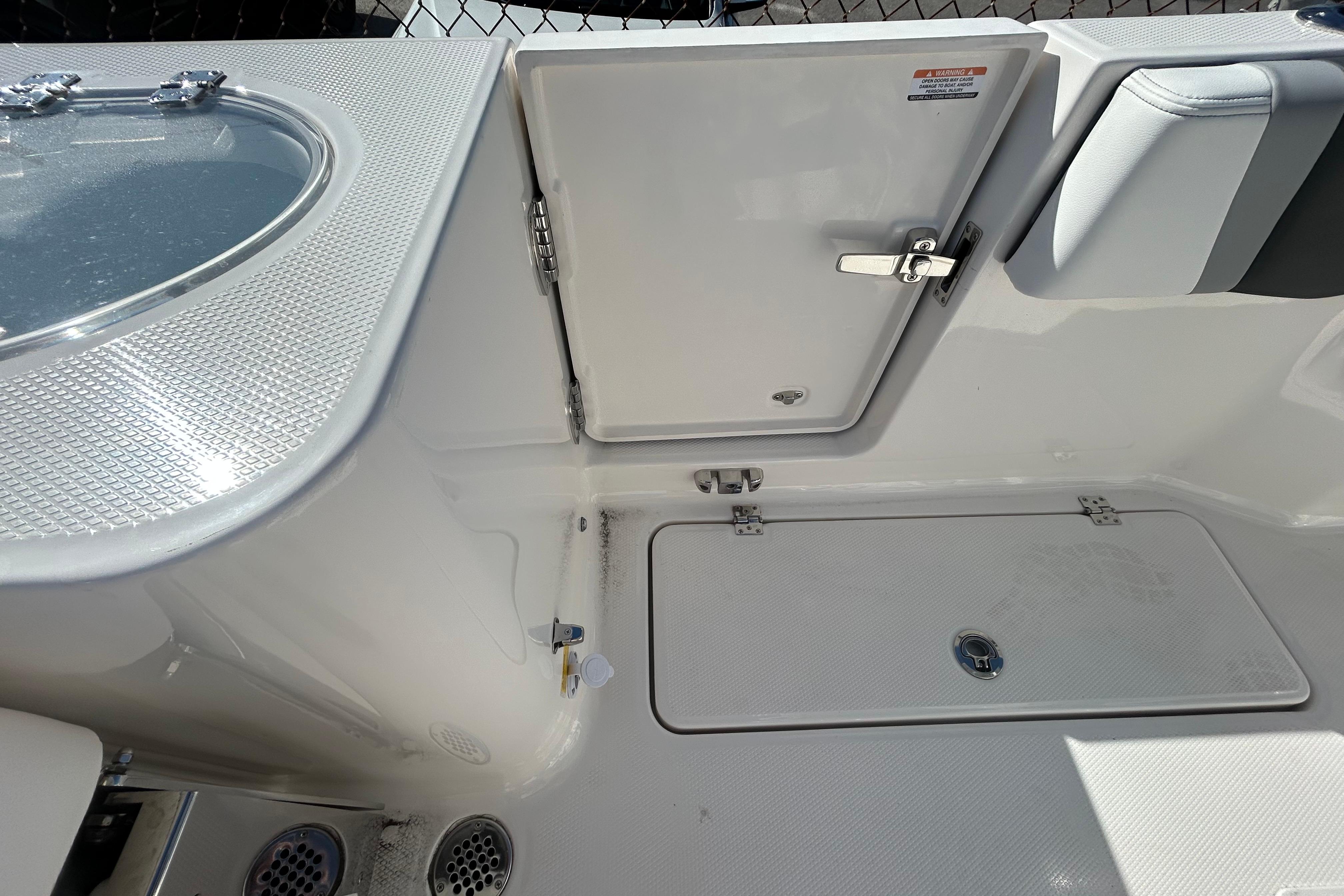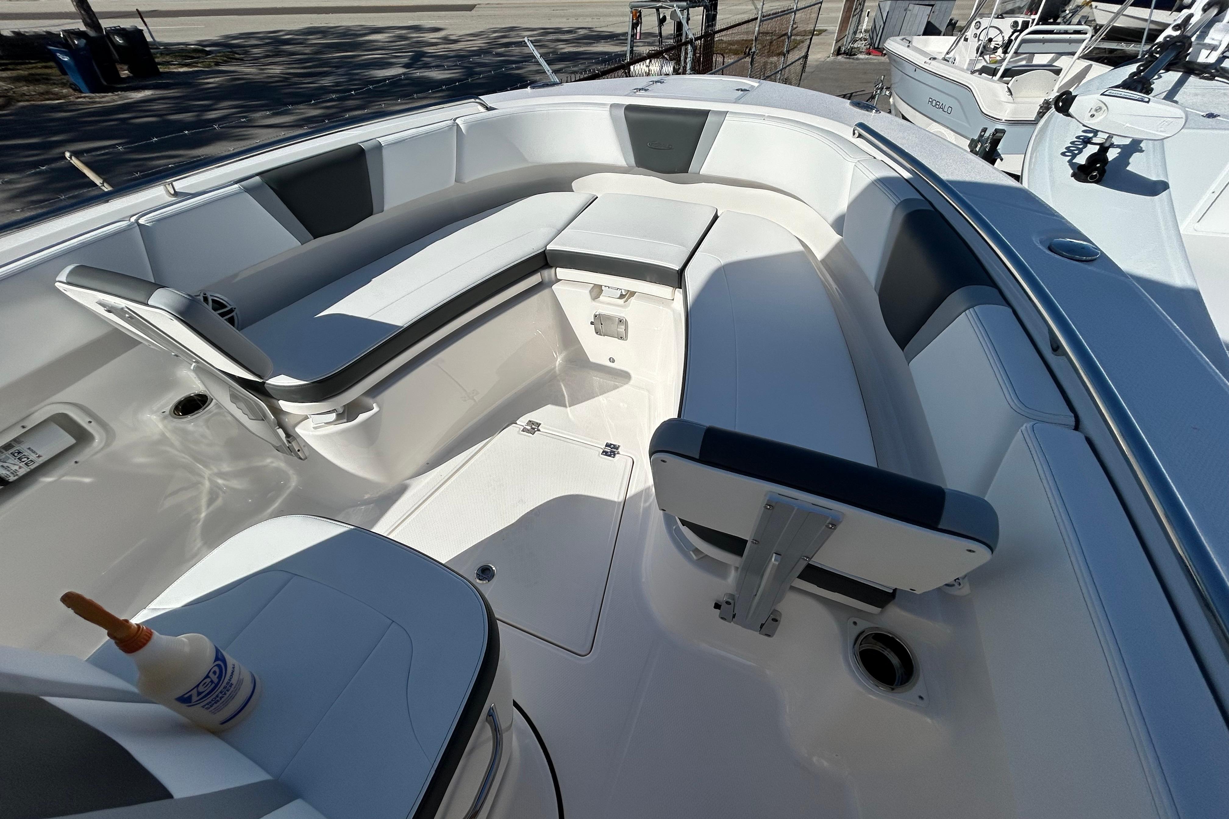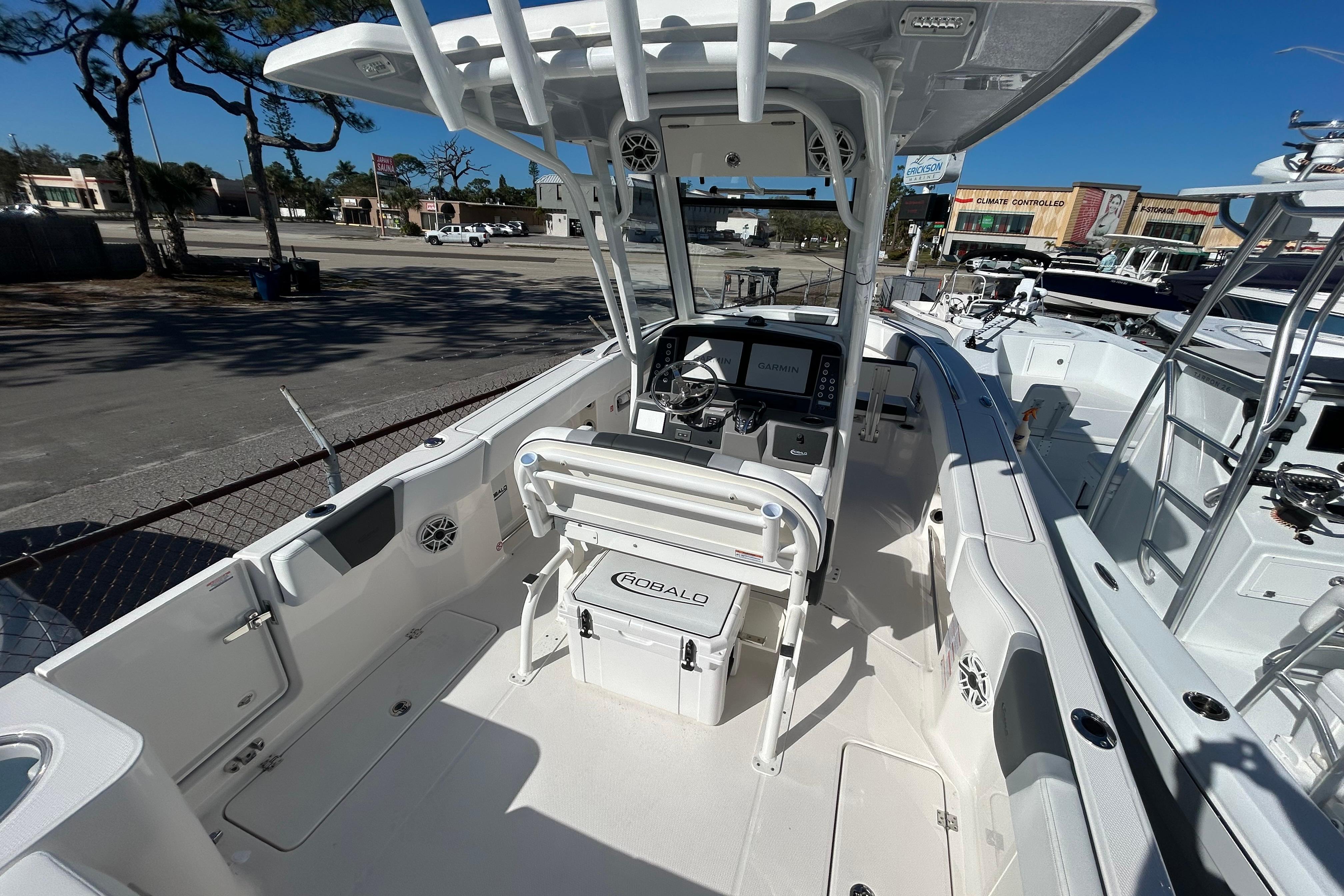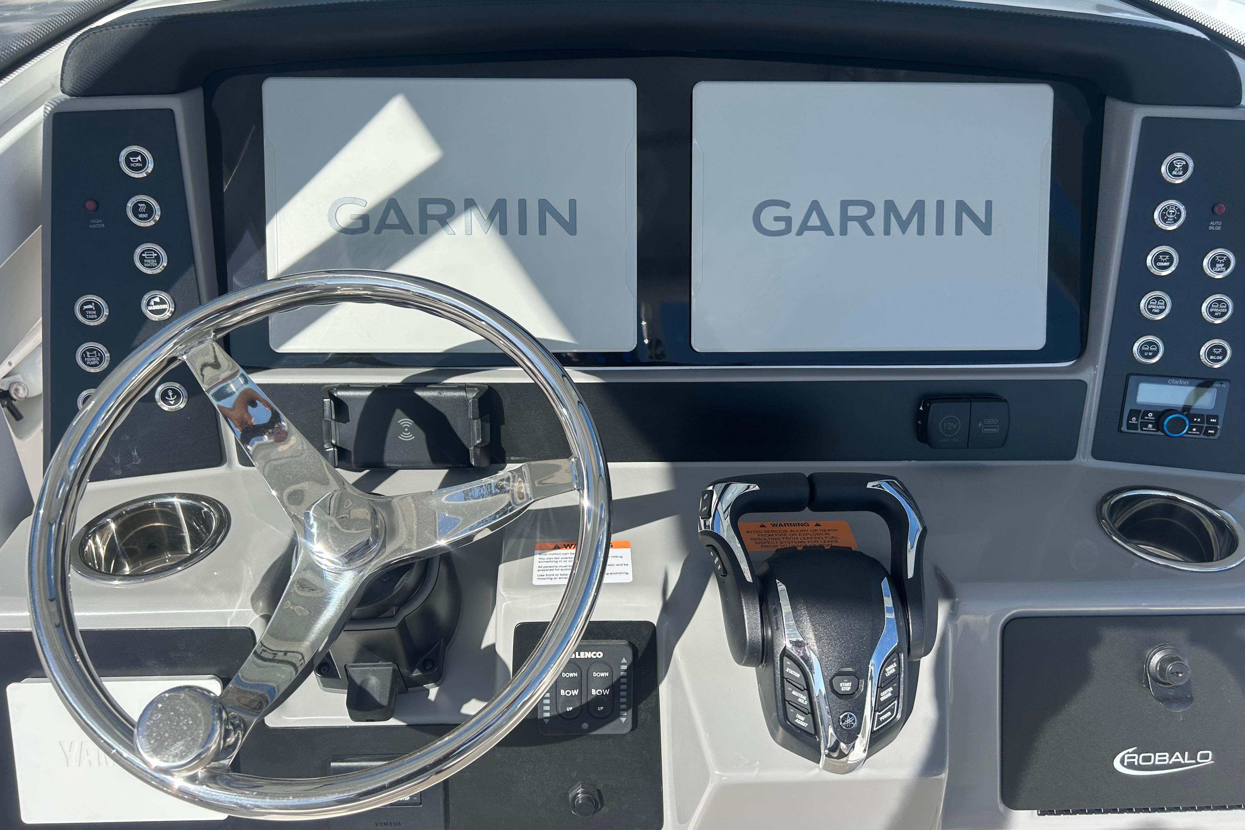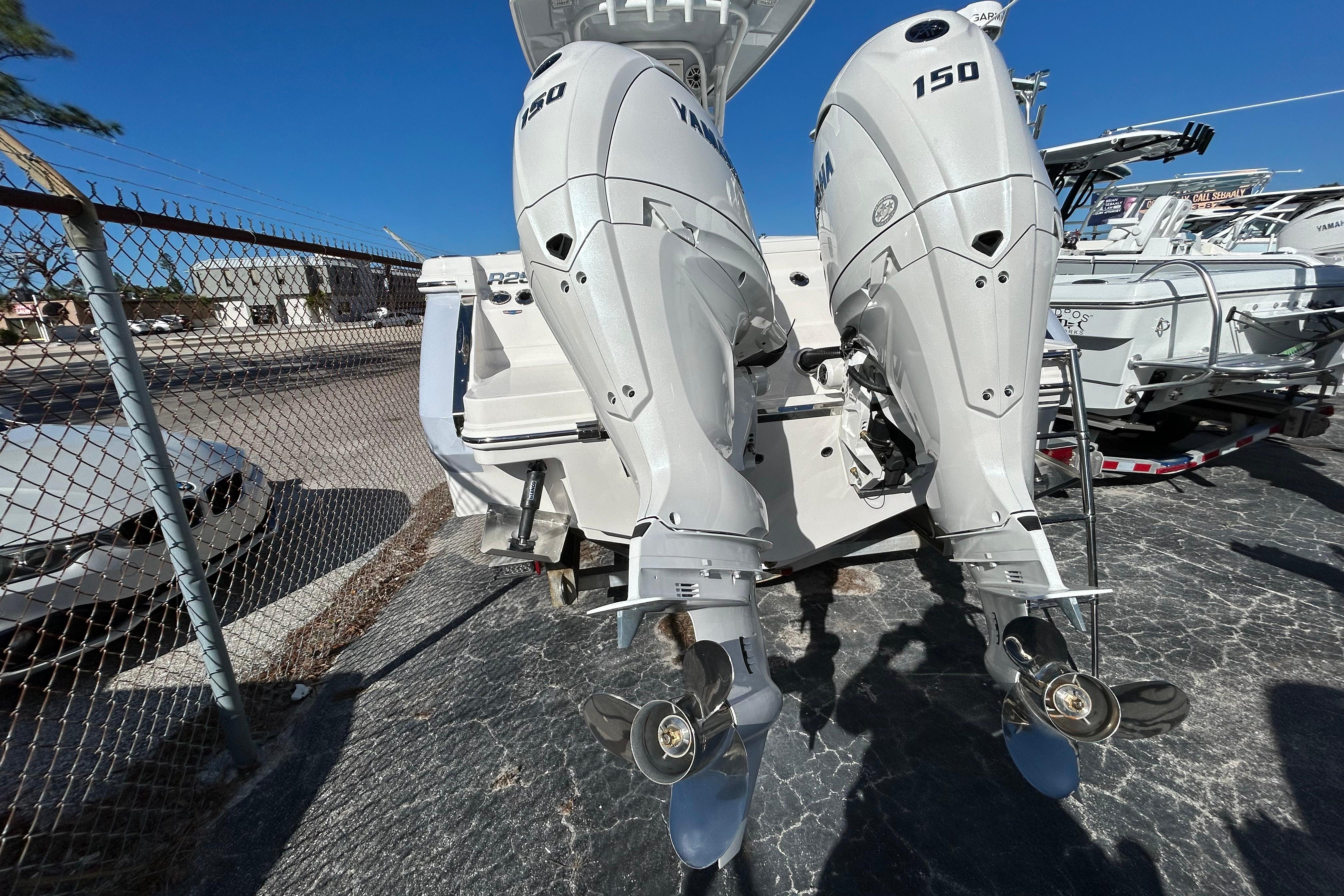 2026 Robalo R250 ready for immediate delivery! Alloy gray hull side color with hard top underside match. Powered by twin white Yamaha F150 XSA2 motors. Electronics include Twin Garmin 1243XSV displays with NMMEA interface to access all engine data, color fish finder, GPS, and plotter, Garmin VHF radio, and JL Audio sound system upgrade with Bluetooth connectivity. Factory options are porcelain bowl toilet with holding tank and gravity discharge, bow table with filler cushion, leaning post with reversible back rest, stainless steel anchor, and much more. Robalo has an extensive list of standard equipment on this boat all backed by a 5 year premium components warranty.