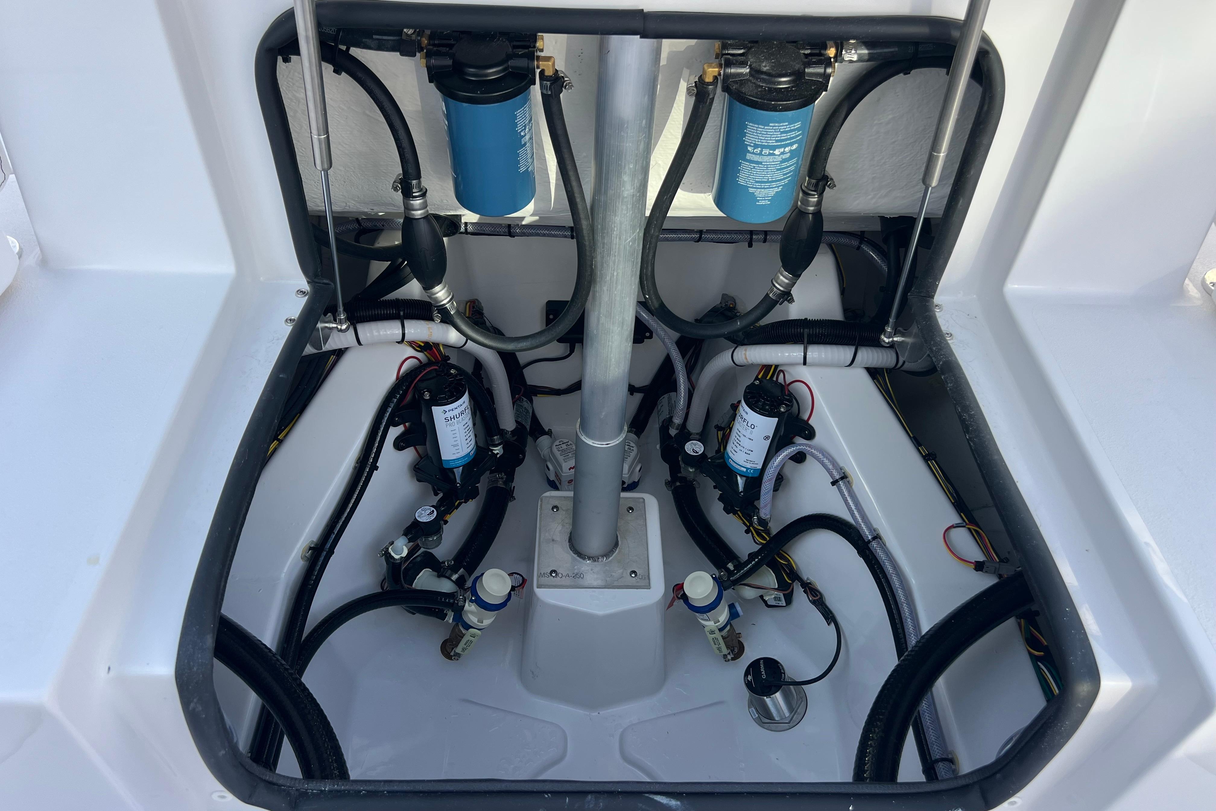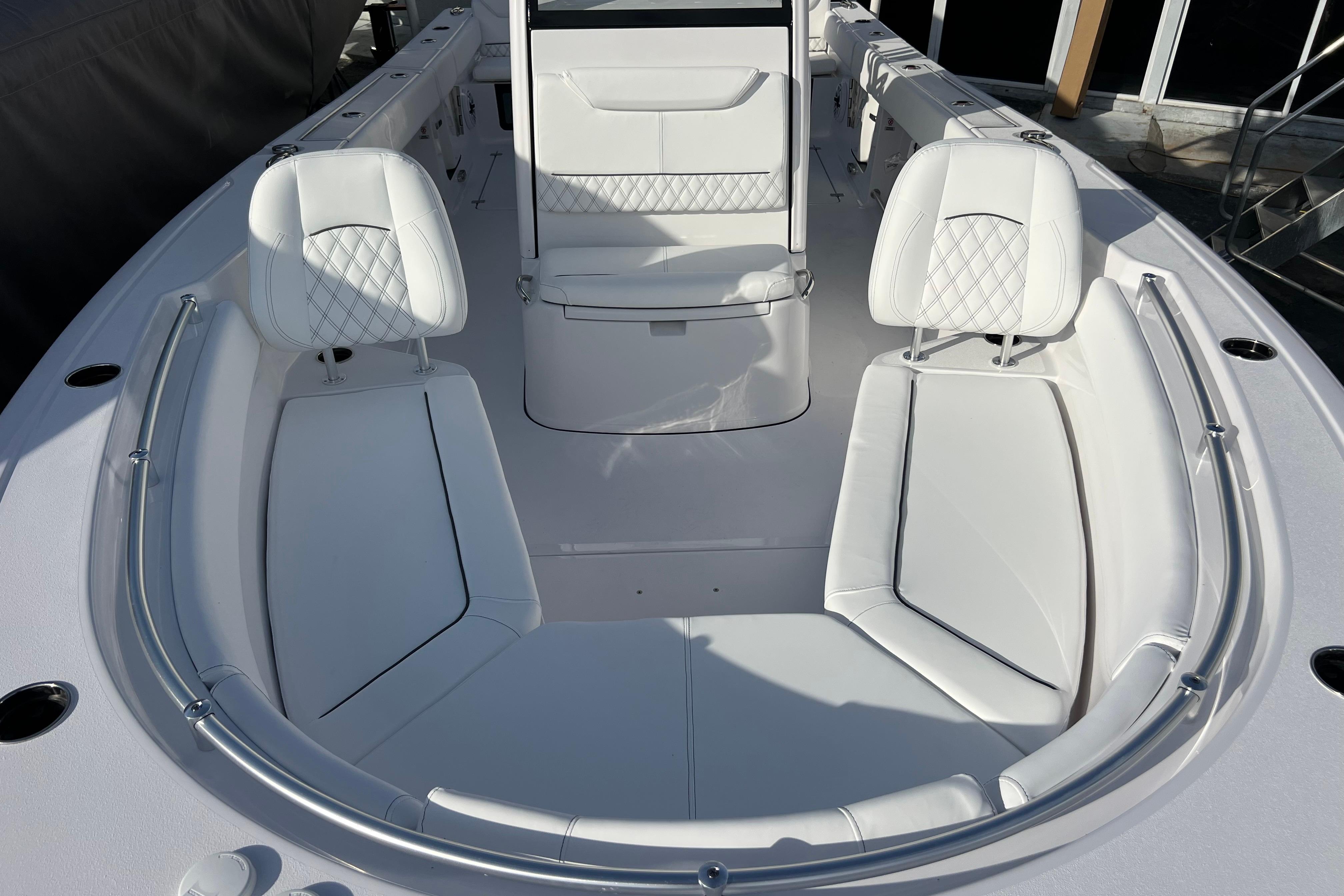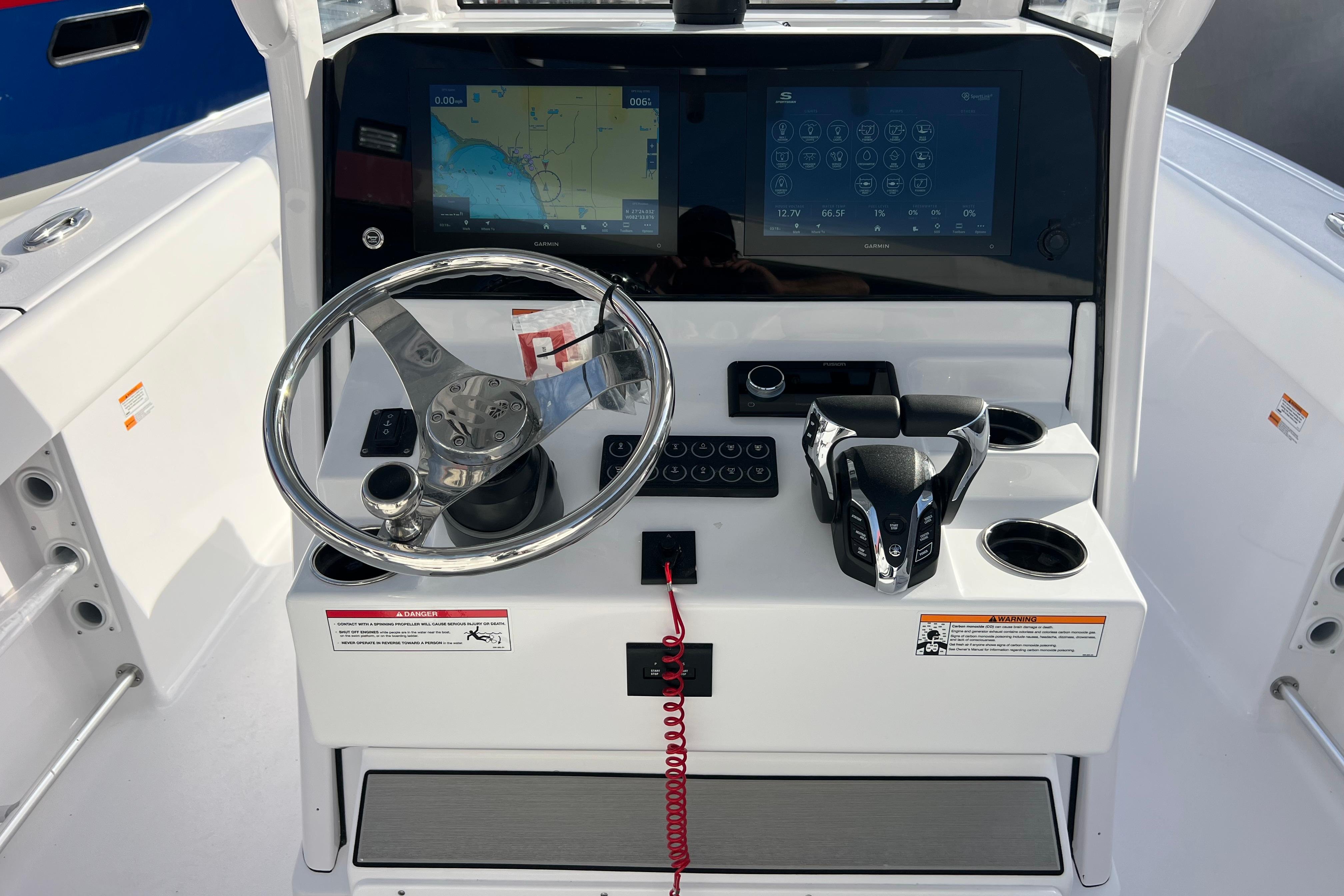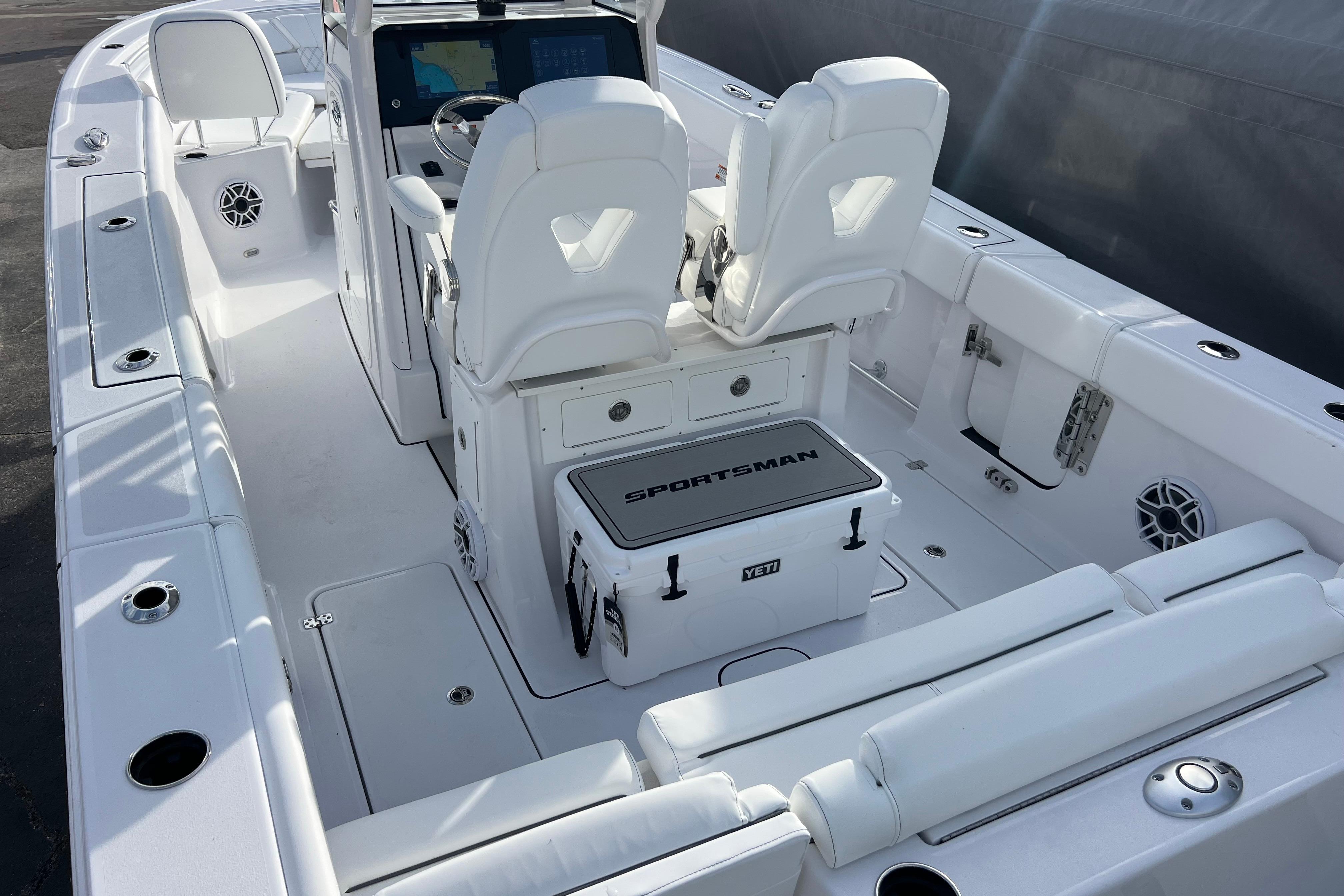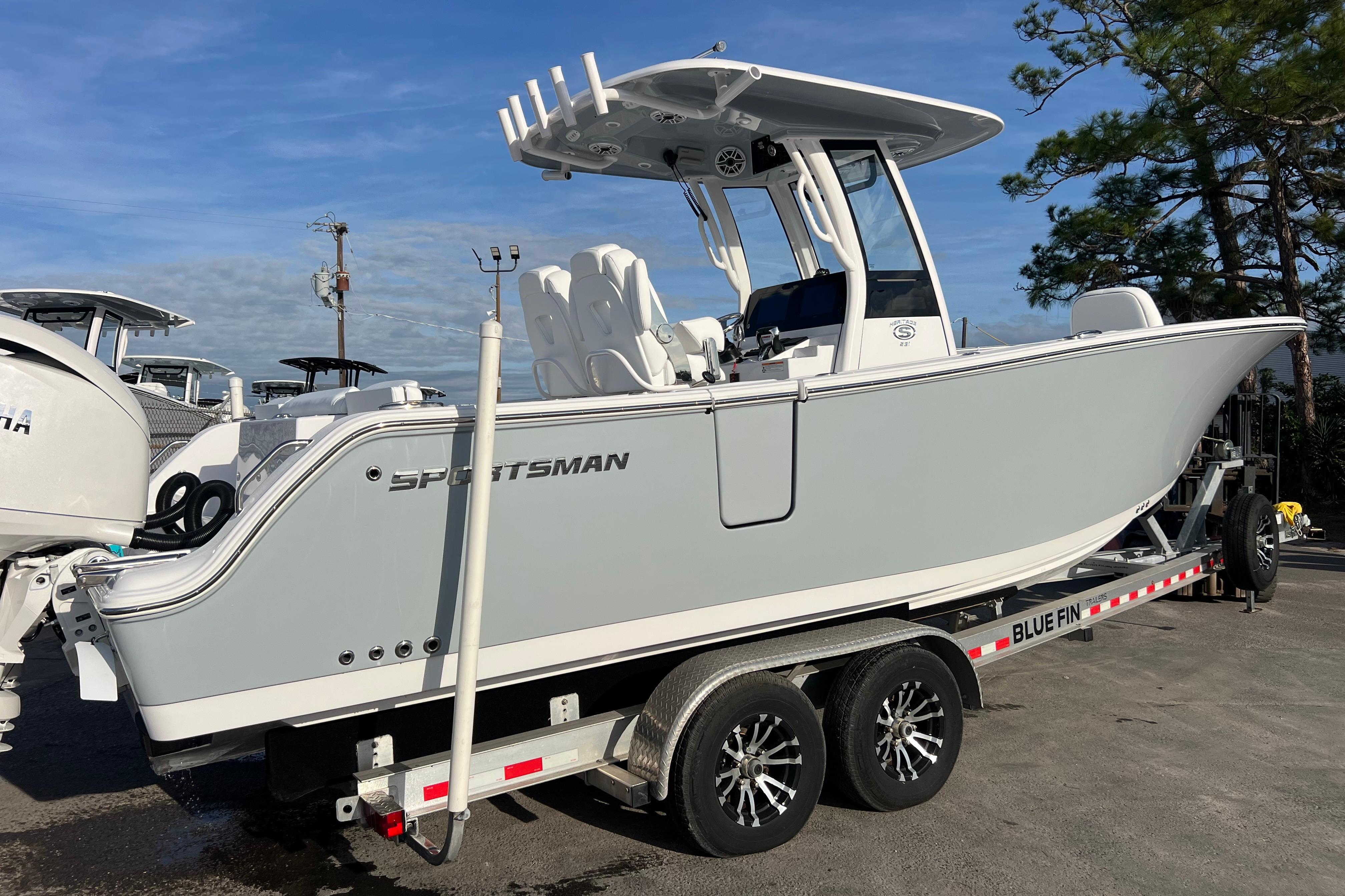 This beautiful Sportsman Heritage 261 is available right now and it is powered by twin Yamaha 200 HP 4-Strokes w/ Digital Throttle & Shift. This Power package also has the new Electric Power Steering. This set up feels very luxurious and smooth and also makes it much easier to drive. It also has the new Sea Keeper RIDE Auto Trim Tab System which keeps the boat steady and stable while under way. The Interior Design of this boat is very well thought out and offers Sandbar Mode! Sandbar Mode is when you are on Anchor & backed up the the Sandbar, you can swivel the Captains Chairs around 180 Degrees to sit facing backwards to enjoy the Views weather it be friends and family playing around or just a beautiful sunset. There is also a Rear Anchor Storage compartment on the swim platform making it very easy to store, handle and deploy the rear anchor. The boat also comes Standard with a Ski Pylon that deploys up out of the Transom. The Console is set up very nice with Two Garmin 12" Multi-Function Displays Flush Mounted in the Black Acrylic Dash. There are a ton of other Standard Features including the Double Dive Doors, Garmin Electronics, VHF Radio, Stereo w/ JL Audio Speakers, Anchor Windlass, and Freshwater Shower. The boat looks amazing with the Storm Cloud Grey Hull Sides and White Bottom and the Storm Cloud Underside of the Hard Top and Powder coating. Options include the 2nd 12" Garmin Display, Gull Wings, On-Board Battery Charger & Trolling Motor Plug, Harness & Adapter.