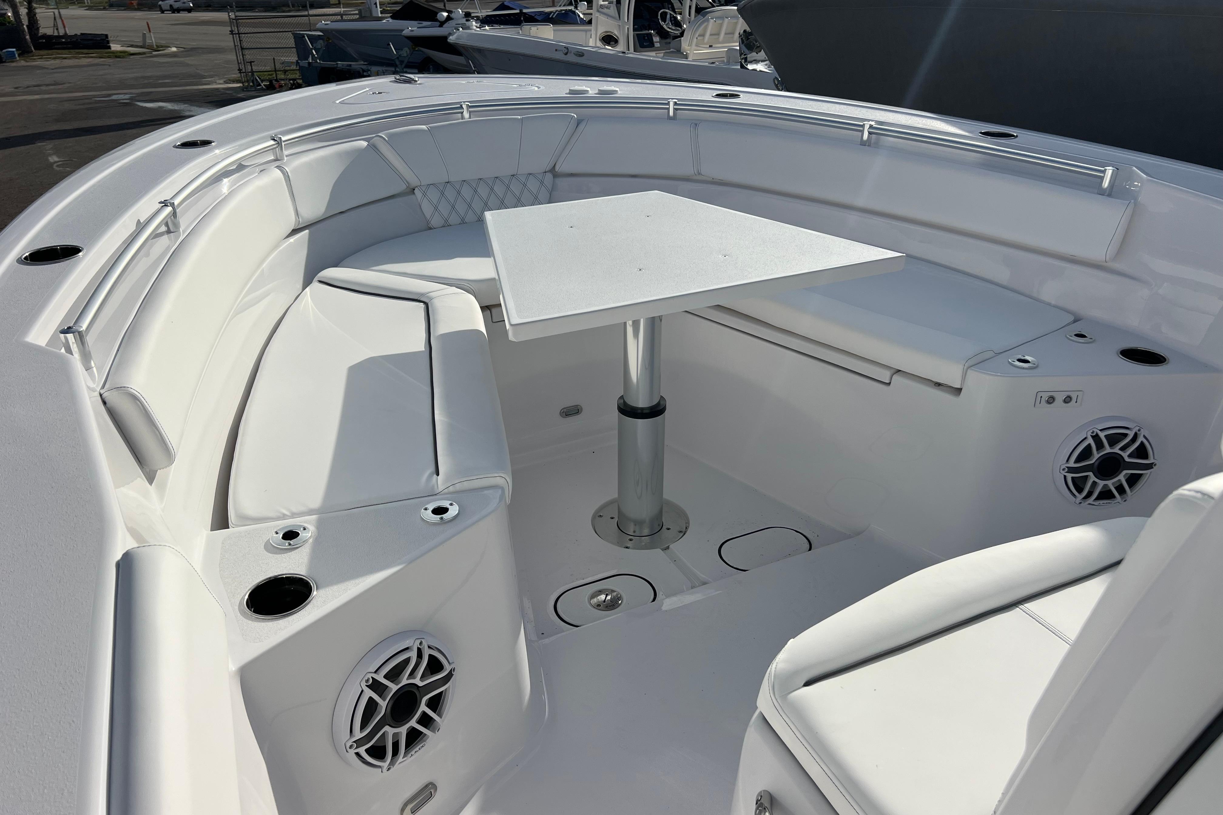 The Heritage 261 defines a new class of family-focused water-centric all-fun boats. Whether you like spending time on the water, in the water or around the water, the all-new Heritage 261 has you covered. The water-centric views in sandbar mode will captivate your heart and is guaranteed to produce some incredible family memories for years to come. The layout includes deep U-Shaped seating at the bow with an electronically actuated table, edge-to-edge seating at the back for up to 5, dual side entry doors that open 180-degrees, dual transom walkthrough doors that flip to offer aft-facing seating, sandbar cooler accessible from outside the boat, dual boarding ladders, swiveling captain's chairs and so much more. Walking through the features on this boat will have you thinking "they thought of everything."