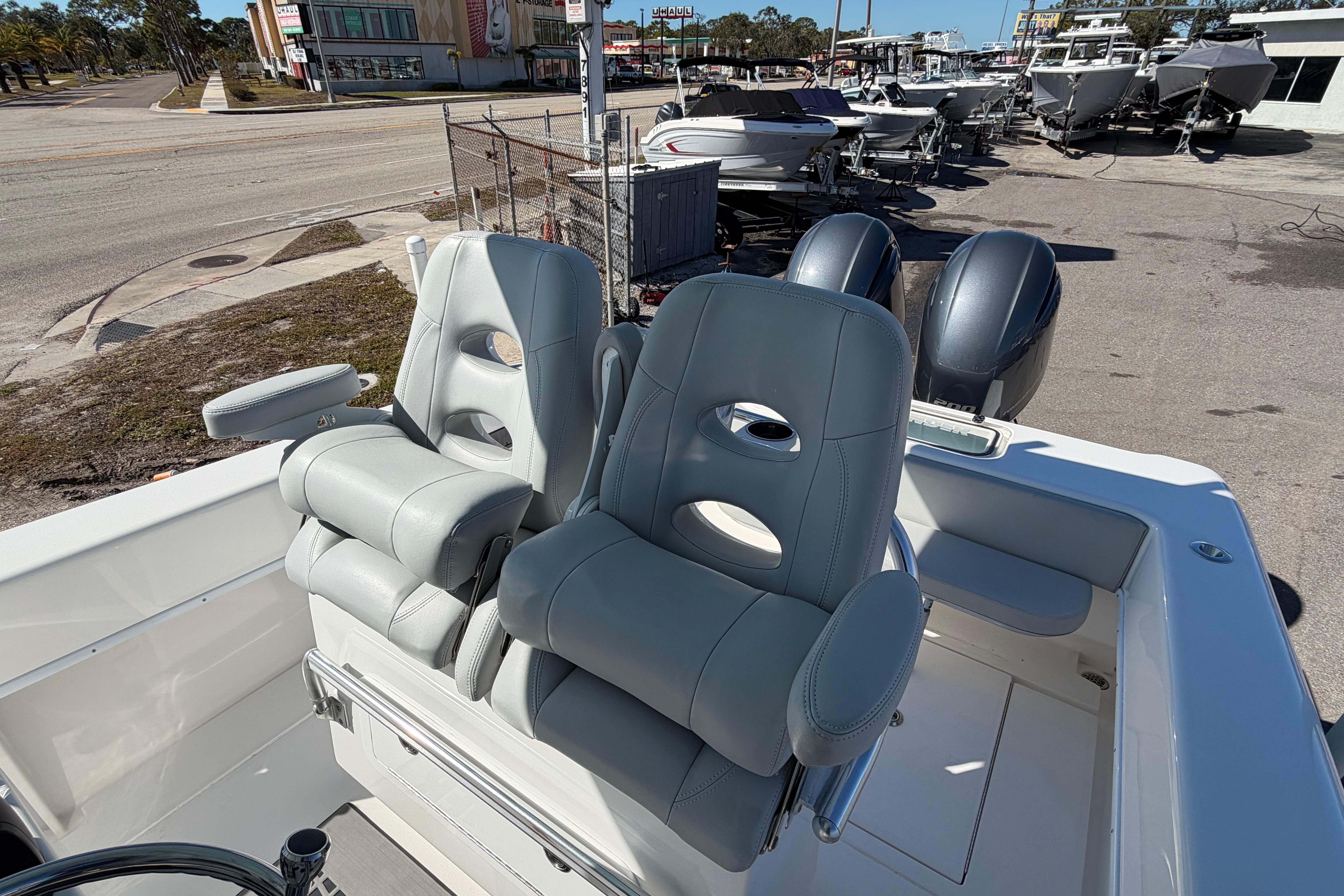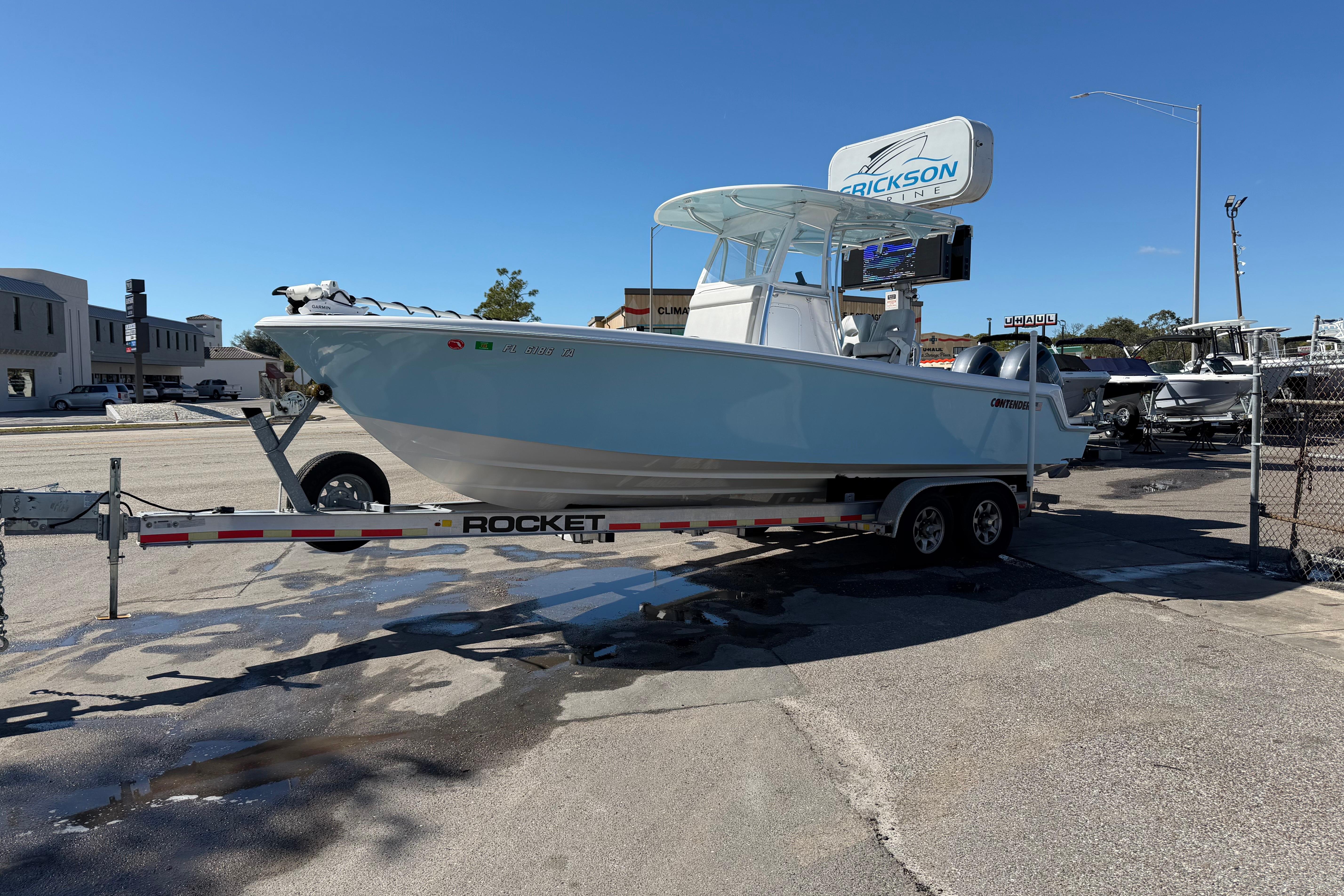 Turn-key and ready to turn heads, this is the cleanest 2021 Contender 28 Tournament you will find. Powered by twin, reliable Yamaha F200XB motors with 475 hours of use. The dual axle Rocket trailer is included and is in exceptional condition. Options include: Garmin Kraken 90" trolling motor with lithium battery, twin Garmin 1242XSV displays with satellite weather and XM audio, top-end Fusion stereo with speakers throughout, Pro Mariner HD20 battery charger, wireless phone charger, underwater lights, upgraded leaning post, and much more.